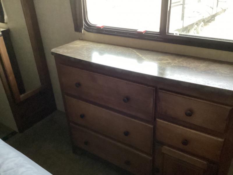 The front bedroom features a king bed slide, dresser, and closet space for all of your things.