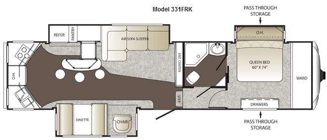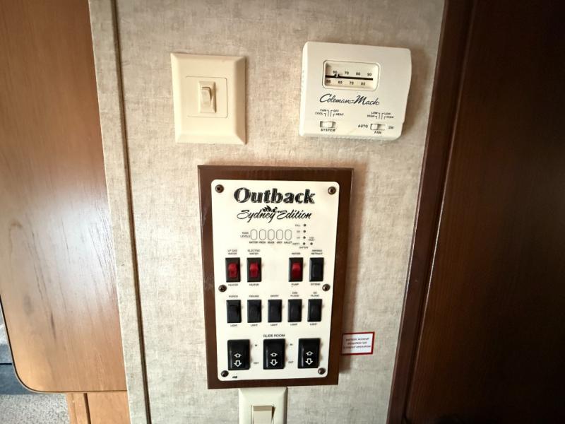 Sydney FW by Outback w/Rear Kitchen Including: 3 Burner Range, Dbl. Kitchen Sink, Overhead Storage, Refrig./Pantry/Counter w/Bar & Stools/Air Sofa Sleeper Slideout, Ent. Center w/32" Flat Screen TV, Booth Dinette & Chair Slide, Step Up to Side Aisle Bath w/Angle Shower, Toilet, Sink, Linen Cabinet, Dbl. Bath Entry, Front Queen Bed Slide w/Overhead Storage, Dresser, Front Wardrobe, Front Pass-Thru Storage and Much More!