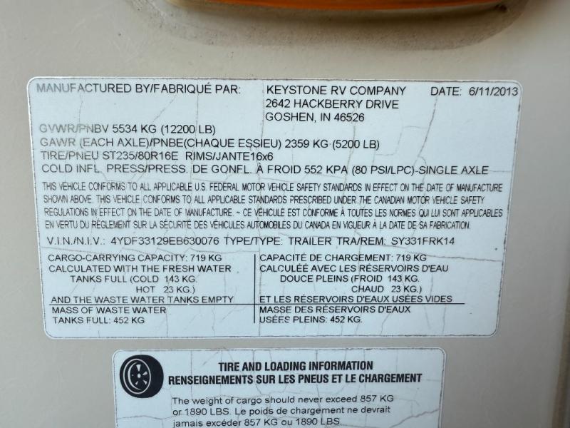 Used 2014 Keystone RV Sydney 331FRK Fifth Wheel