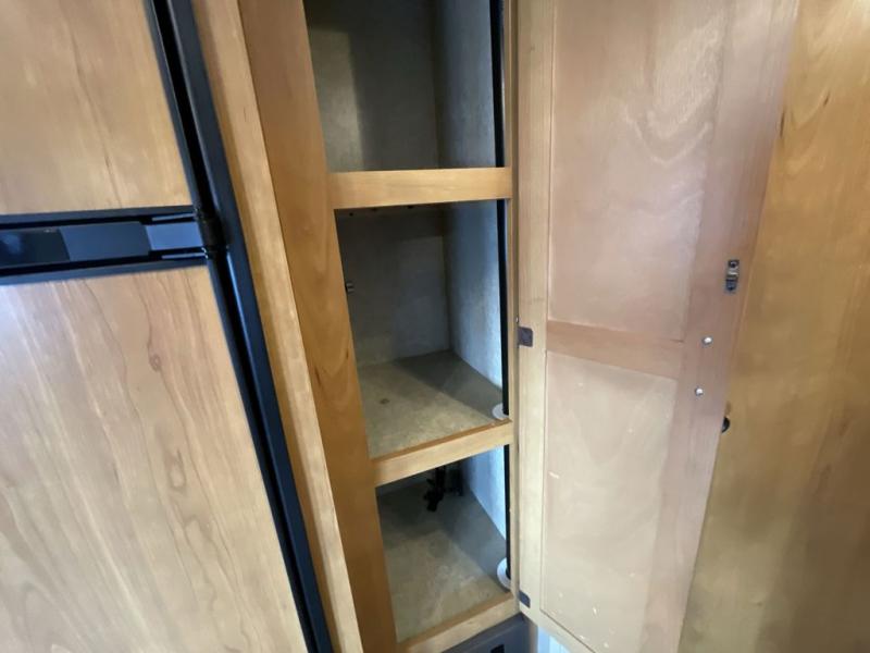 There is plenty of overhead cabinets throughout this travel trailer as well as a front exterior trunk door.