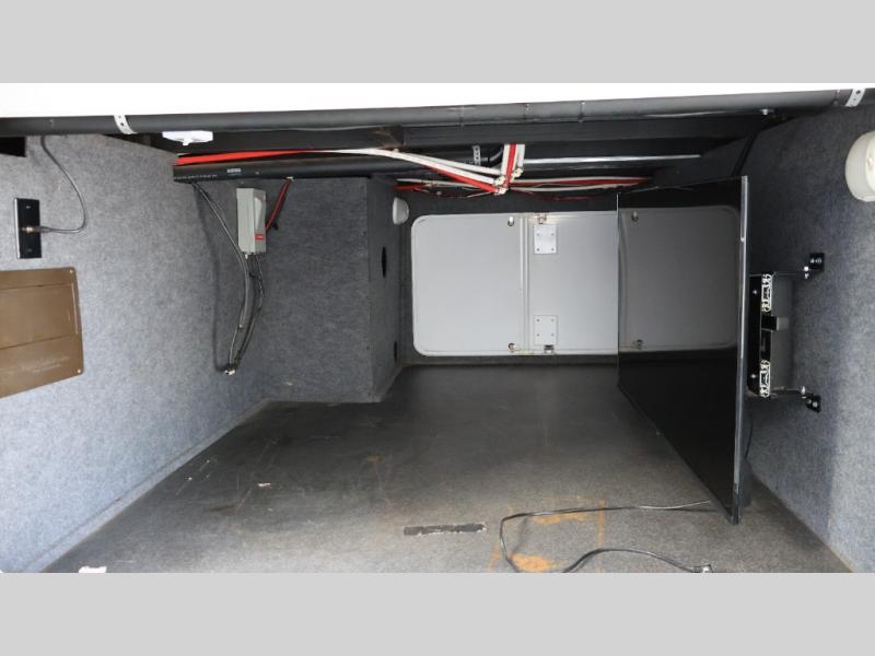 Enjoy hanging out on the rear hide-a-bed sofa including end tables and overhead storage. Or, use it for sleeping when you entertain extra guests.
