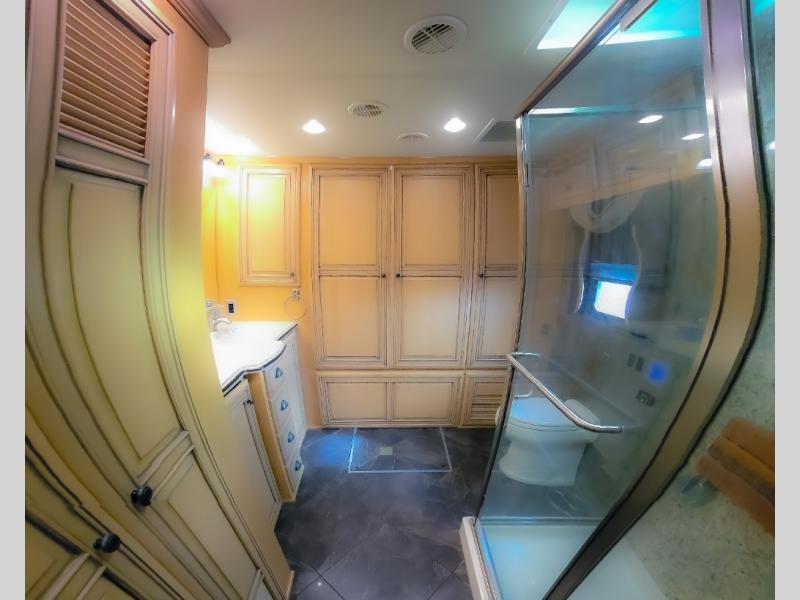 The Dutch Star 4369 motor home by Newmar offers triple slides and a bath and a half.