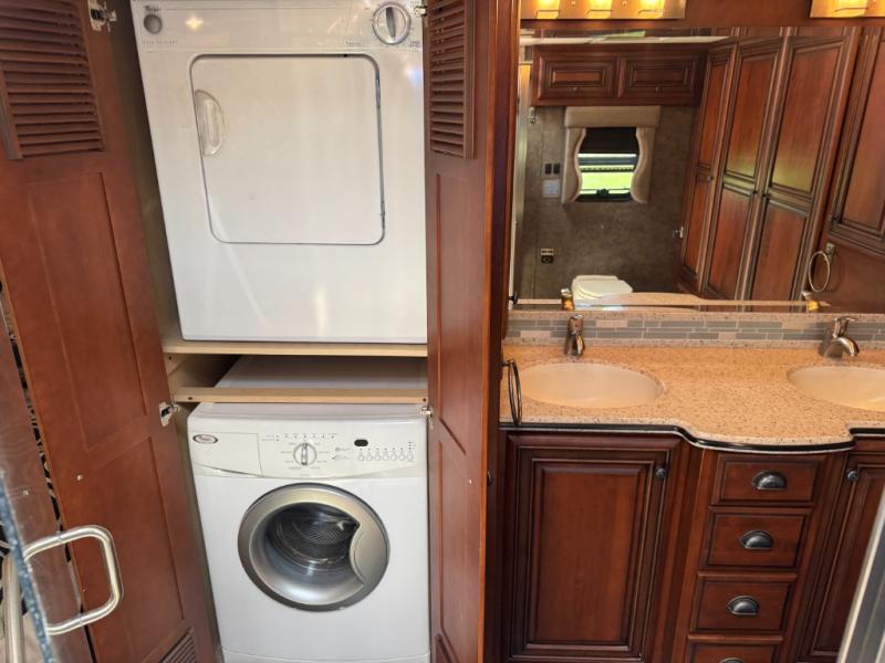 There are plenty of overhead cabinets throughout the motor home as well as an optional washer and dryer.