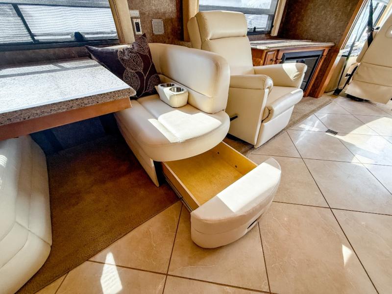 Stay connected and entertained with multiple flat-screen TVs, premium sound systems, and satellite prep. The cockpit features upgraded navigation, backup and side-view cameras, and ergonomic captain’s chairs designed for all-day comfort.