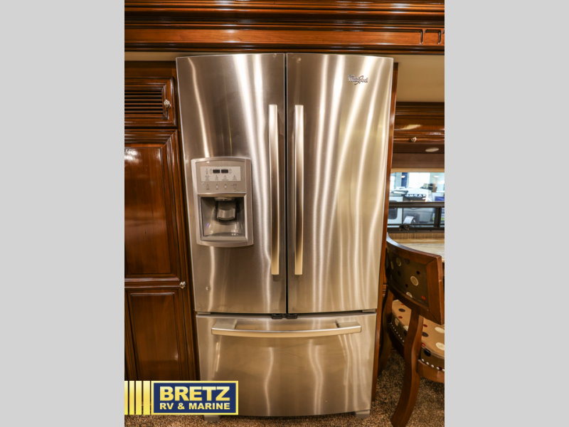 The King Aire 4593 motor home by Newmar offers a bath and a half and triple slides. One of the slides is even a full wall slide.
