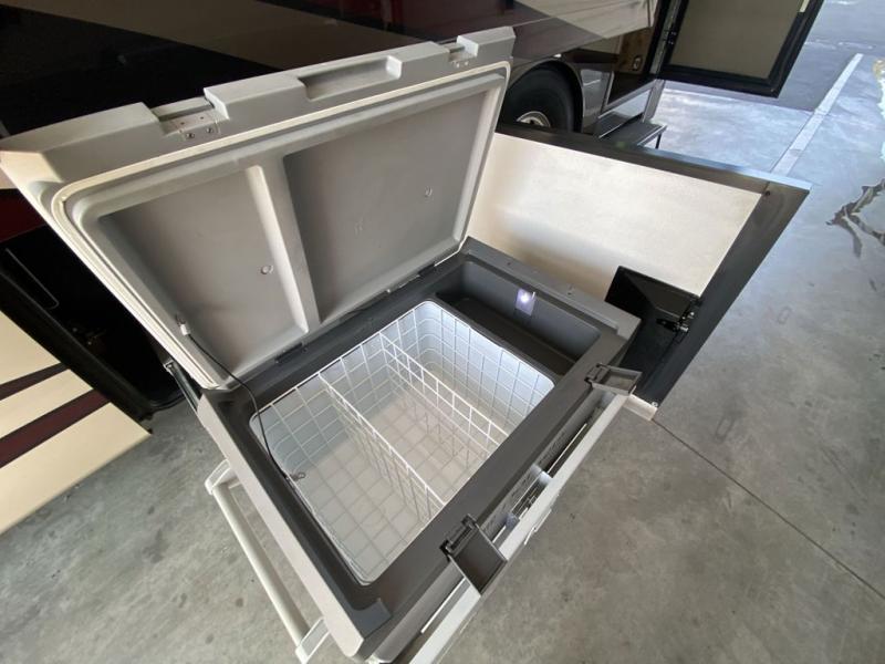There are plenty of overhead cabinets throughout the motor home as well as an optional washer and dryer.
