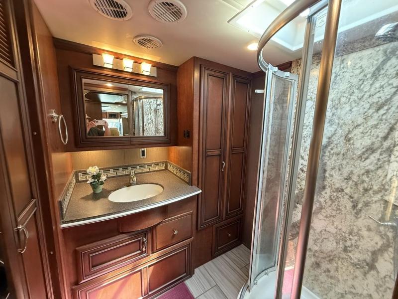 The Ventana 4037 motor home by Newmar offers triple slides and a bath and a half.