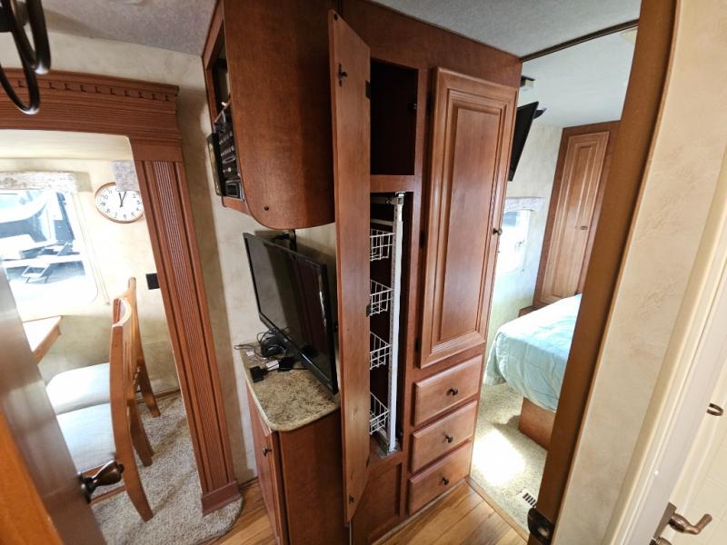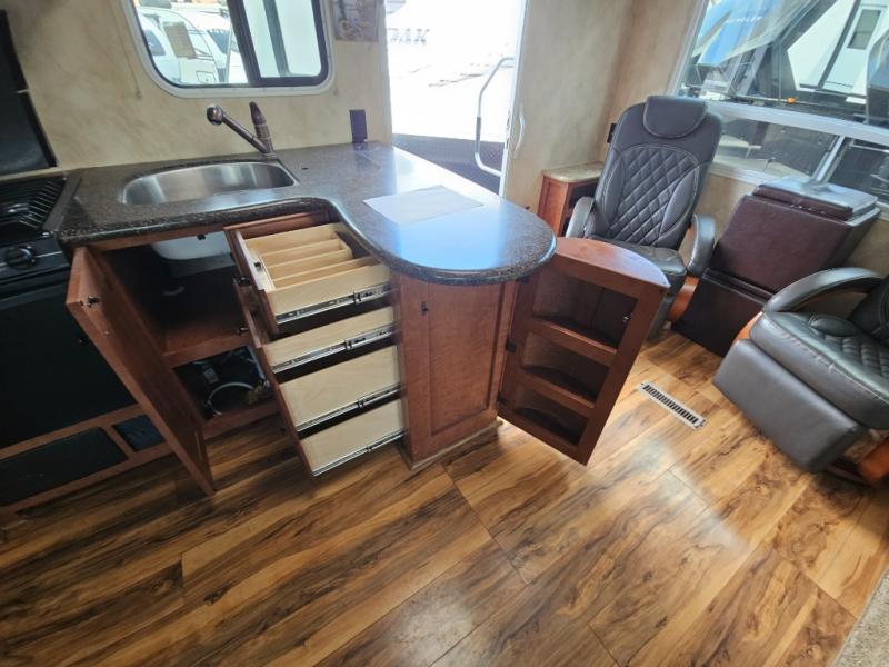 Double Slide Arctic Fox Silver Fox Edition FW w/Rear Kitchen Including Pantry, Dbl. Kitchen Sink, 3 Burner Range, Refrigerator, Pantry/TV Cabinet, Dinette & Sofa Slideout w/Overhead Storage, Swivel Chair, Step Up to Bed & Side Aisle Bath w/Angle Shower, Toilet & Sink, Linen/Wardrobe Slideout, Queen Bed w/Nightstands, Overhead Storage and More!