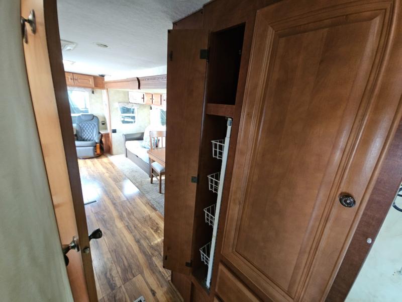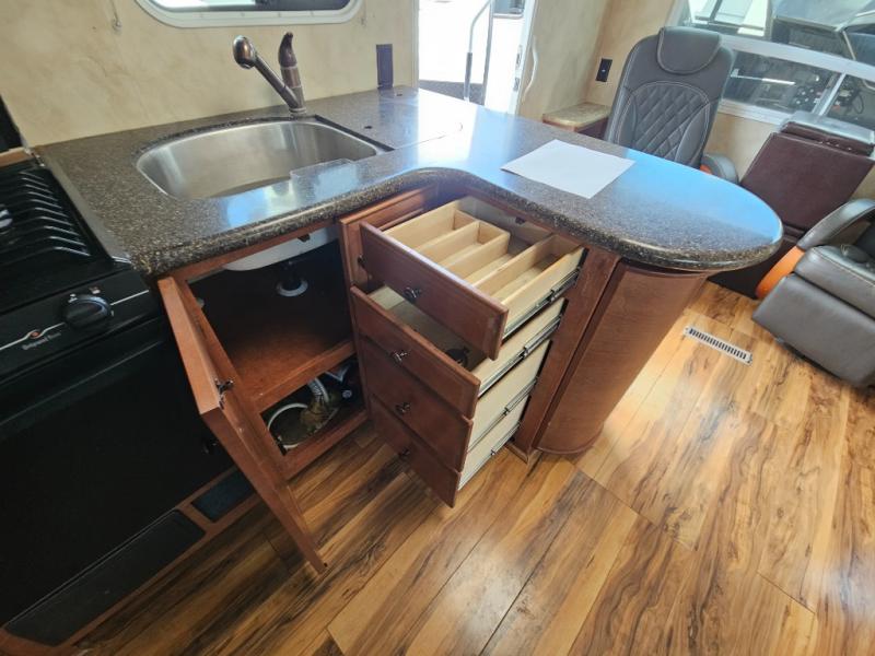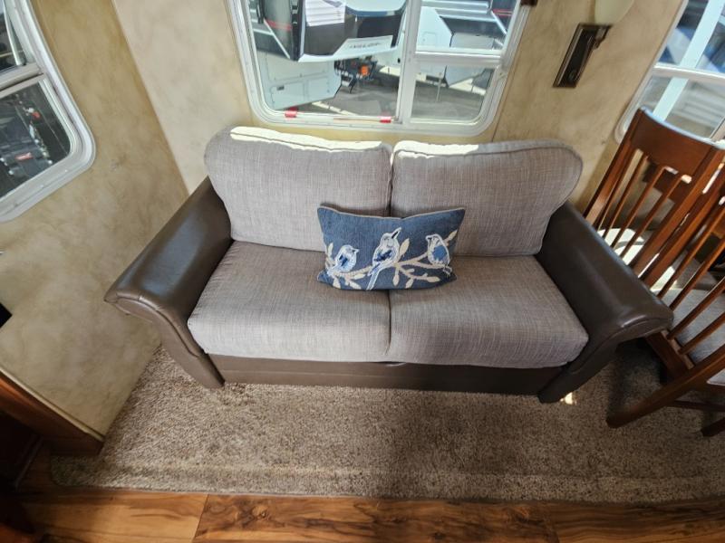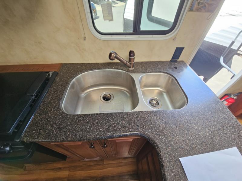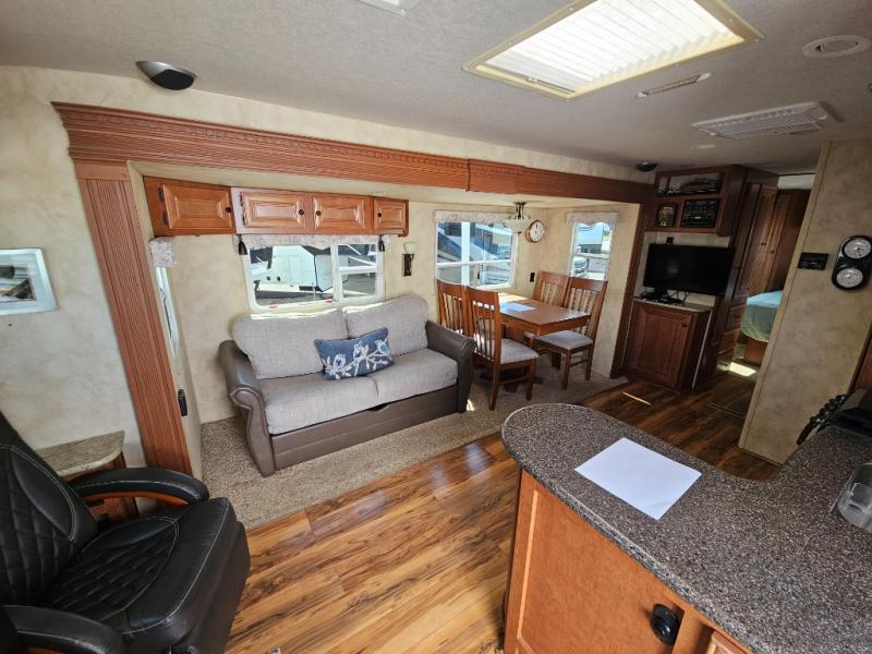 Double Slide Arctic Fox Silver Fox Edition FW w/Rear Kitchen Including Pantry, Dbl. Kitchen Sink, 3 Burner Range, Refrigerator, Pantry/TV Cabinet, Dinette & Sofa Slideout w/Overhead Storage, Swivel Chair, Step Up to Bed & Side Aisle Bath w/Angle Shower, Toilet & Sink, Linen/Wardrobe Slideout, Queen Bed w/Nightstands, Overhead Storage and More!