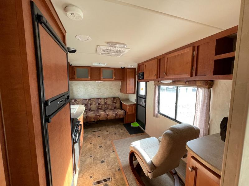 Pre-owned 2014 Nash 19L trave trailer! This Nash, made by the same folks that bring you Arctic Fox, is a nice tandem axle trailer with lots of room. The booth dinette was removed and there is a nice chair to relax in and that really opens up the floor space.