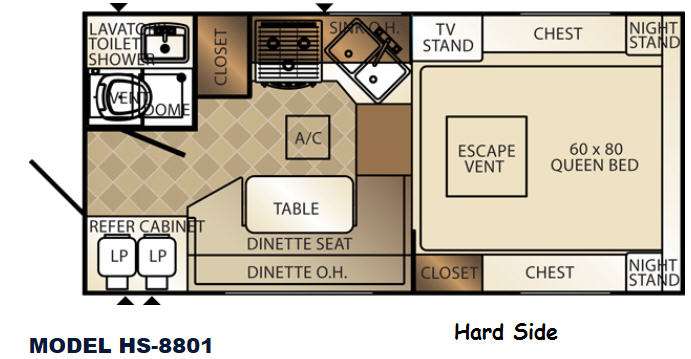 There are plenty of conveniences in this hard side Backpack Edition truck camper by Palomino. Model HS-8801 features a wet bath with dome, dual LP tanks, a queen bed and more!