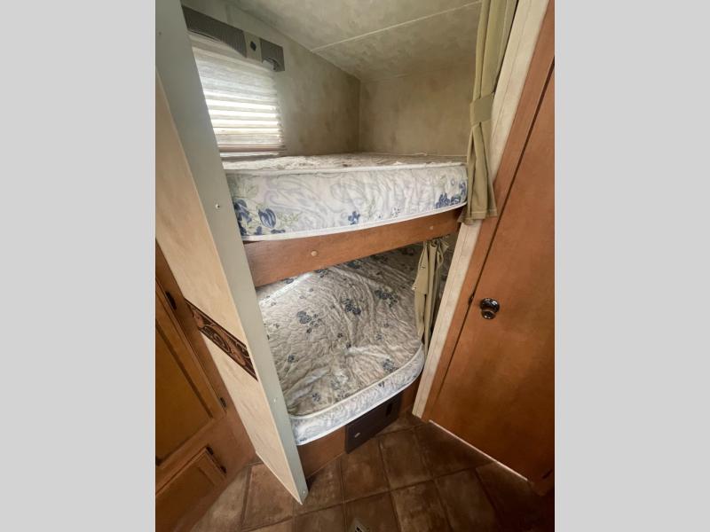 Single Slide Palomino Puma Bunkhouse Fifth Wheel w/Rear Corner Dbl. Bed w/Bunk Above, Wardrobe, Rear Corner Bath w/Tub Shower, Vanity w/Sink & Toilet, U-Dinette & Sofa Slideout w/Overhead Above Sofa, Pantry, Refrigerator, 3 Burner Range, Dbl. Kitchen Sink, Skylight, Ent. Center, Step Up to Front Bedroom w/Sliding Door, Queen Bed, Shirt Closets w/Nightstands Below Both Sides and Much More!