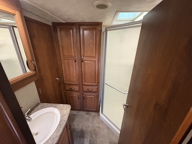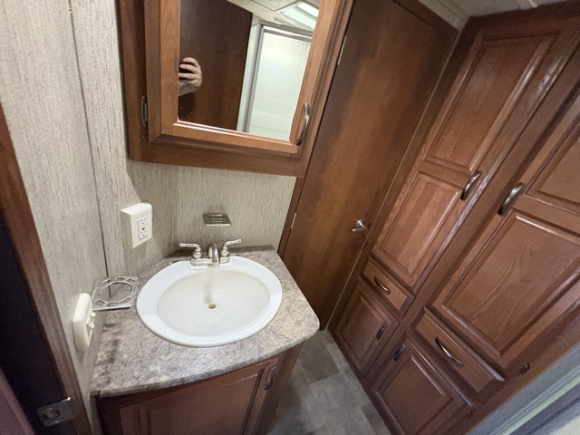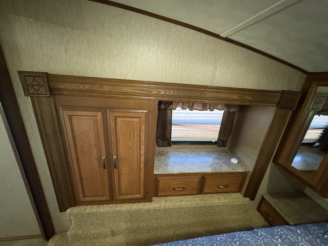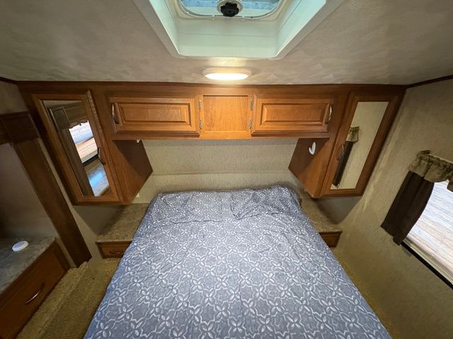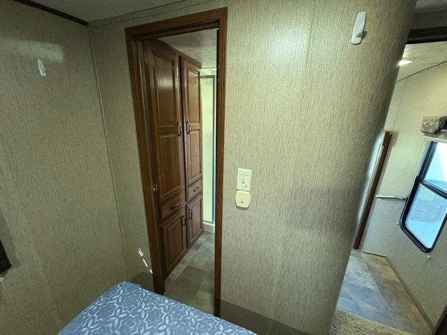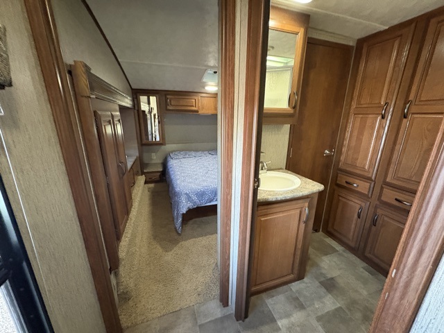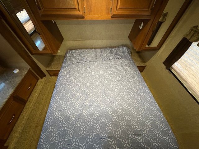 The front master suite provides a welcome retreat with slide out dresser and wardrobe. Sleep comfortably on the residential queen size bed including closets and nightstands on both sides, and overhead storage space, plus so much more!