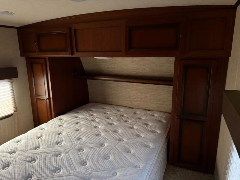 In the rear of this Solaire unit you will find a convenient bath with toilet, sink, and tub/shower with dome for added natural light inside. In the opposite corner there are double bed size bunks. Perfect for the kids or extra guests.