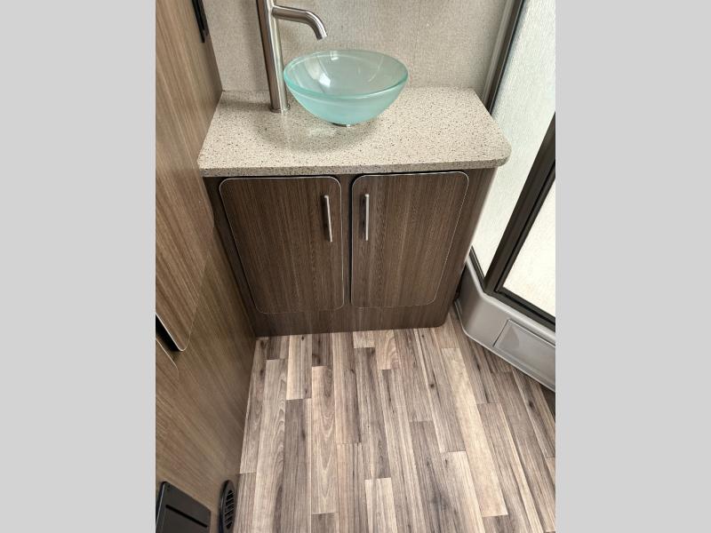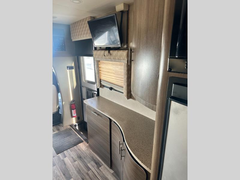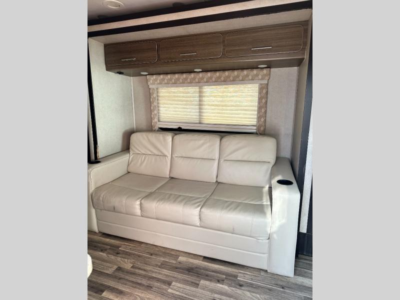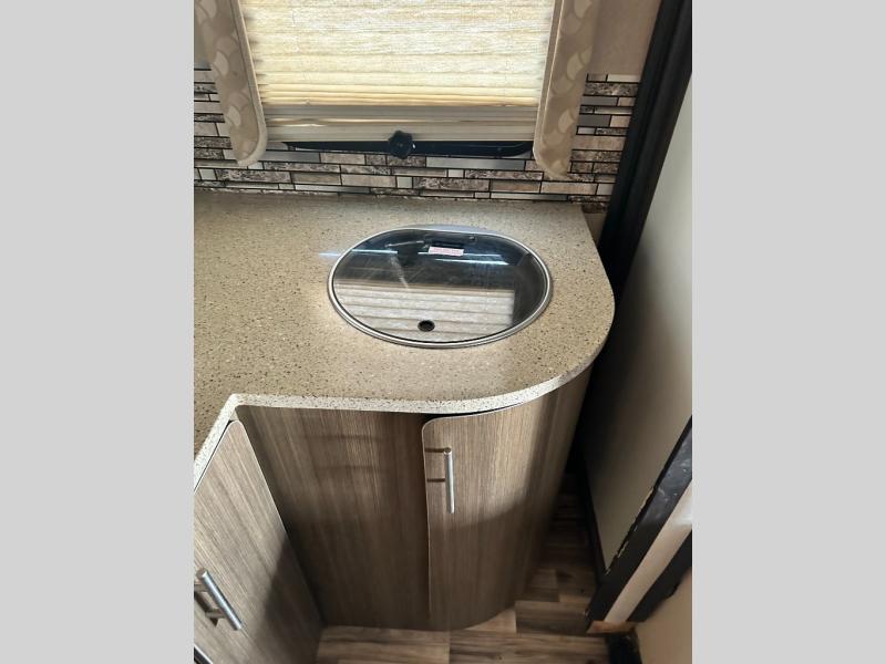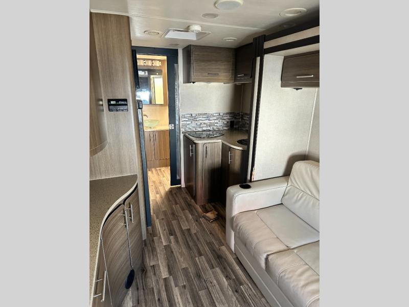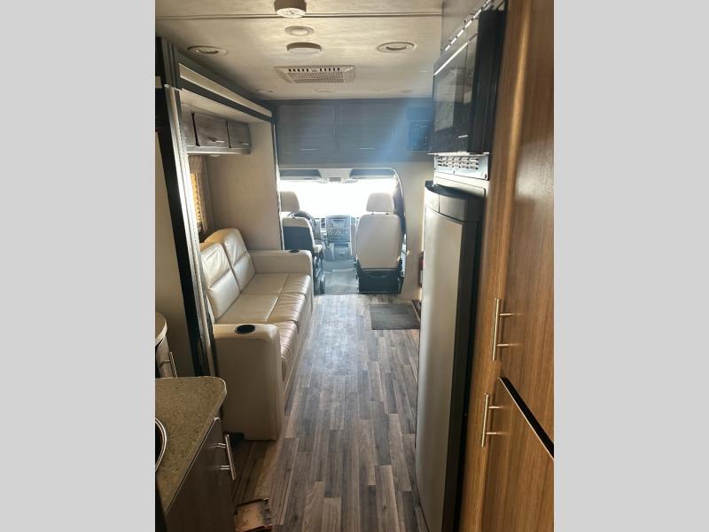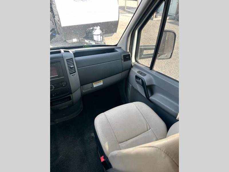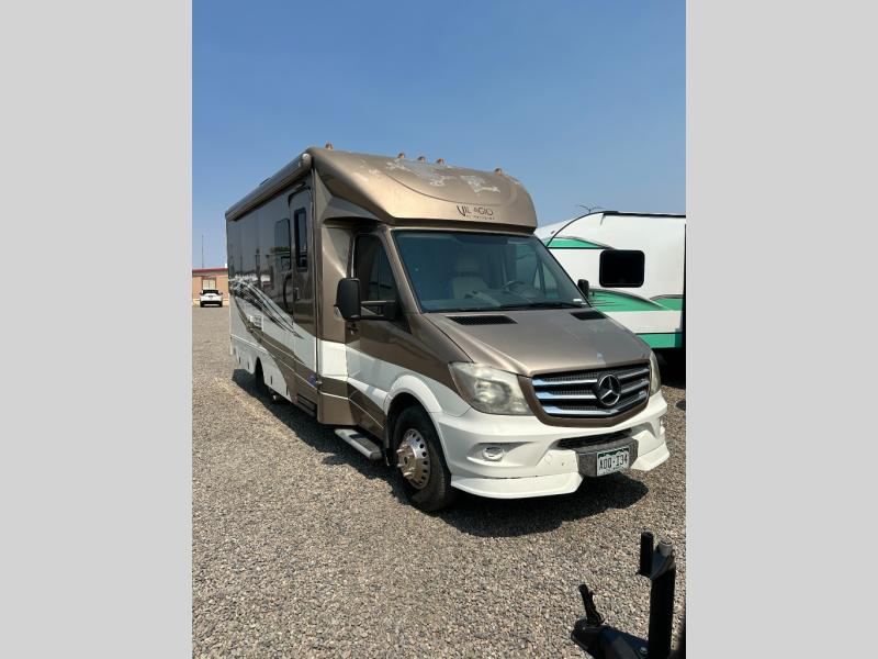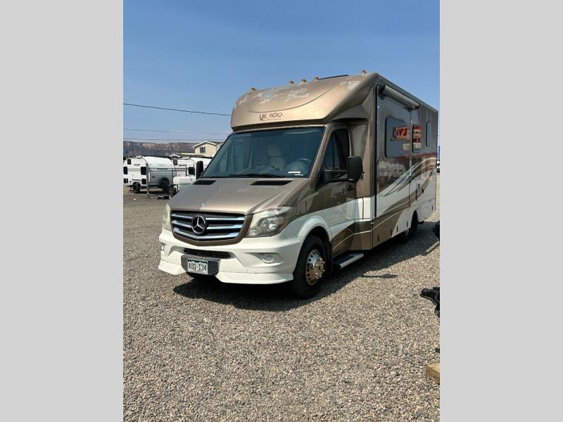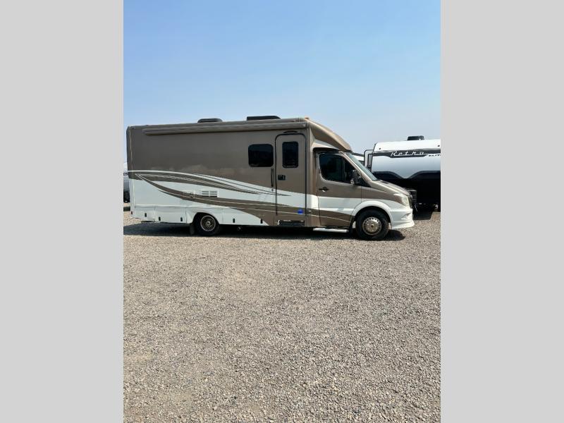 The 2014 Renegade Villagio 25TBS is a luxury Class C diesel motorhome built on the dependable Mercedes-Benz Sprinter 3500 chassis and powered by a fuel-efficient 3.0L V6 BlueTEC turbo diesel engine. Measuring just over 25 feet, it features a twin bed slide-out floor plan that offers flexible sleeping arrangements and a spacious interior. Inside, you'll find rich hardwood cabinetry, LED lighting, a fully equipped galley with solid-surface countertops, a 2-burner cooktop, convection microwave, and a 7 cu. ft. refrigerator. The fully enclosed bathroom includes a shower, toilet, sink, and vanity, while entertainment features like a flat-screen TV, surround sound, and DVD/CD player make relaxing easy. Climate control is handled by a 13.5K BTU roof A/C and propane furnace, and the on-demand tankless water heater ensures comfort on the road. With full-body paint, a power awning, ample exterior storage, and a 5,000 lb towing capacity, the Villagio 25TBS is ideal for travelers who want a premium, maneuverable motorhome that doesn’t compromise on features or comfort.