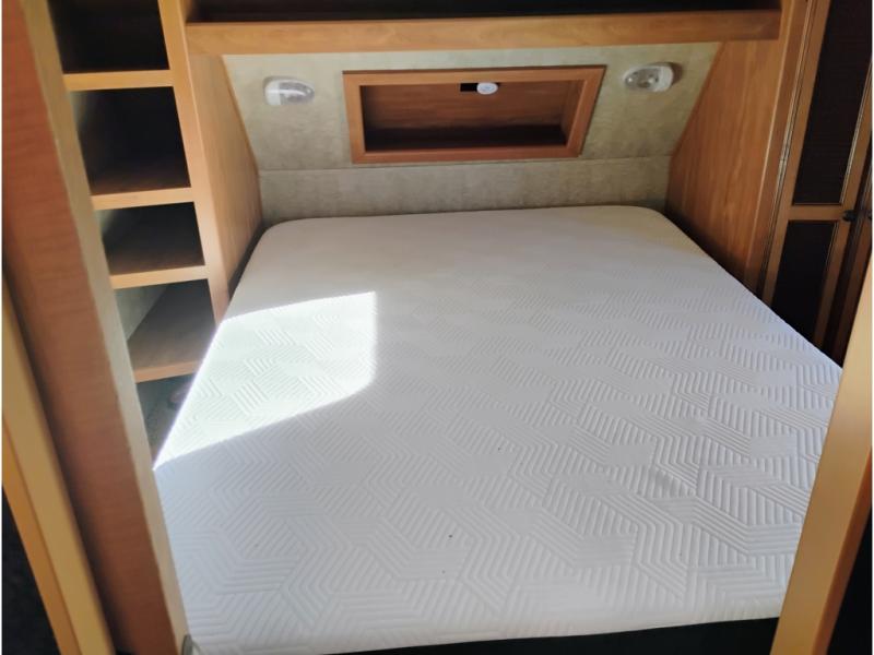 The front bedroom is also spacious and provides a queen size bed for a great nights rest. There are dual bedside wardrobe closets on both sides of the bed, plus overhead storage above the head of the bed to keep things neat and organized.