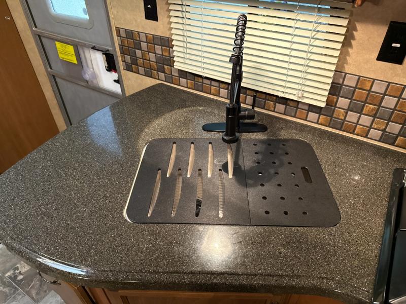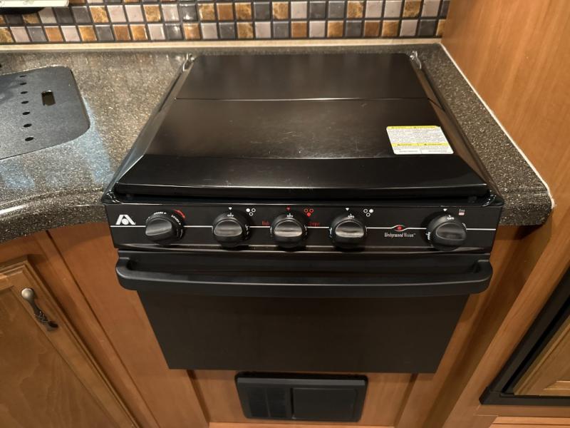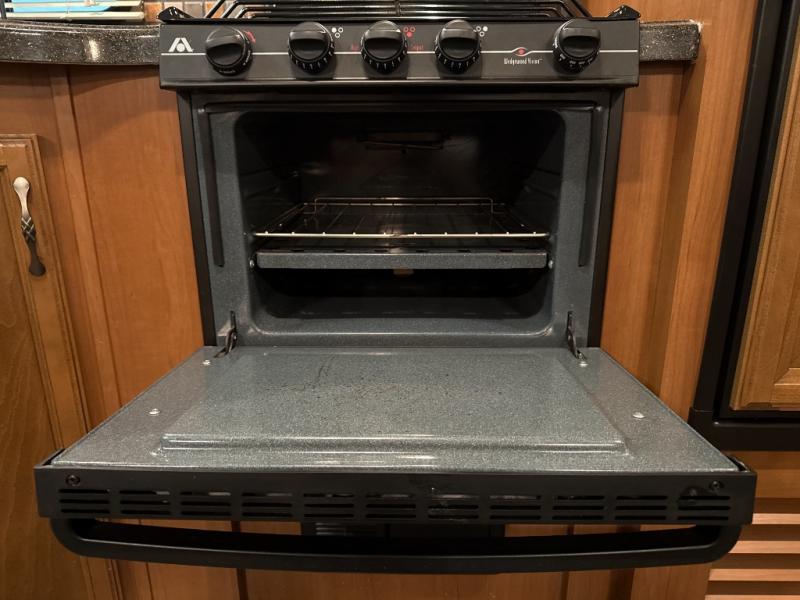 In the kitchen cook up your favorite meals with a three burner range, microwave oven, and kitchen sink for easy cleanup. There is also a refrigerator and pantry for food and dry good storage plus more.