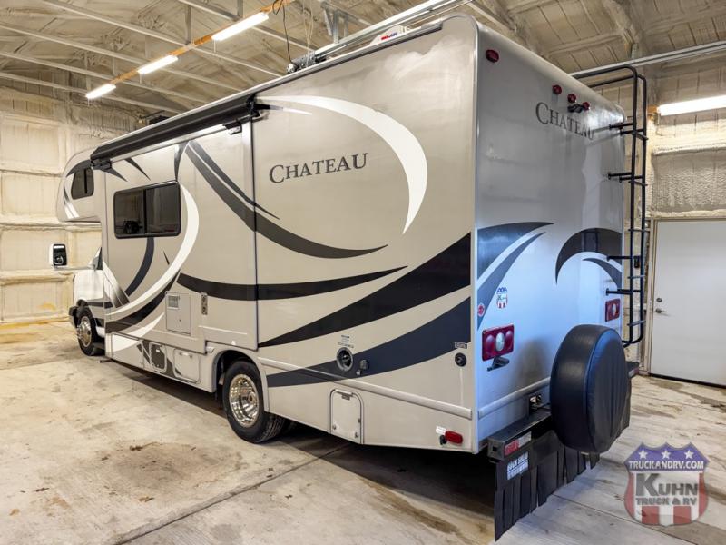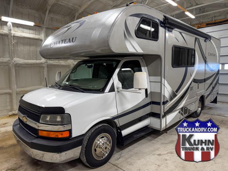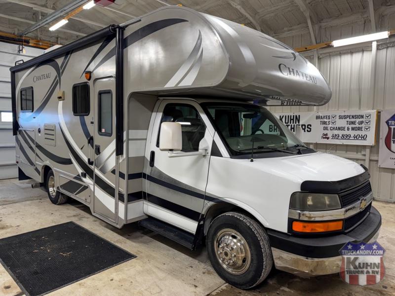 2014 Thor Chateau 24C - 25.5' bumper to bumper - 6.0L V8 engine - Chevy Express 3500 chassis - Full self contained - 15 foot power awning - Tow package - 3 burner cooktop - Microwave oven - The tires have date codes of 0225 - 5 seat belts - Onan 4k gas generator with 80 hours - Rooftop A/C - LP furnace - Flat screen TV - Holding tanks - In the cabin area there are power windows, locks, tilt, cruise, USB, and AUX input - This Chateau is ready for your next adventure!
