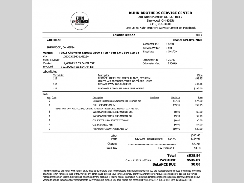 Stopped in cuz steps wouldn’t retract fully and was having problems with water heater. They were really booked, but took time to help us so we could get on the road again very nice people. - Rae
