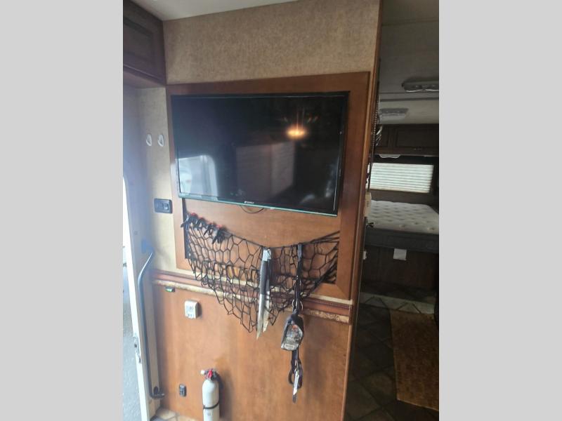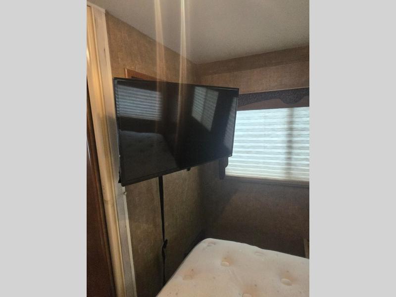 A 22" LCD TV is centrally located for viewing from the sofa, dinette, or cab over bunk.