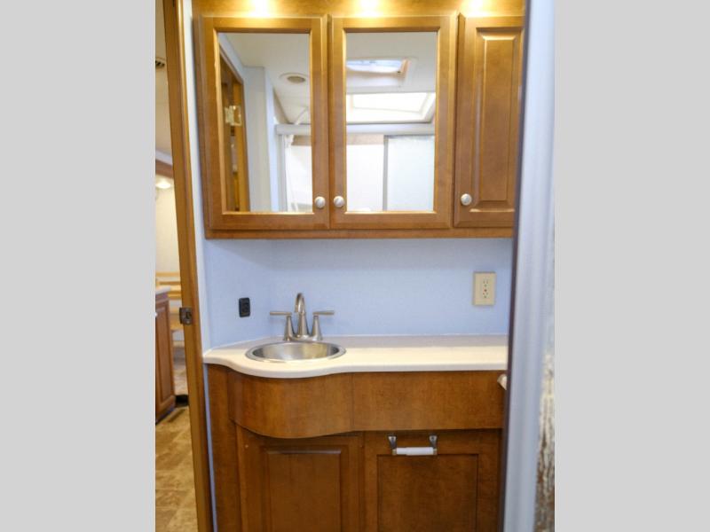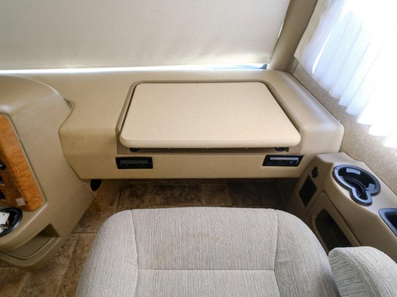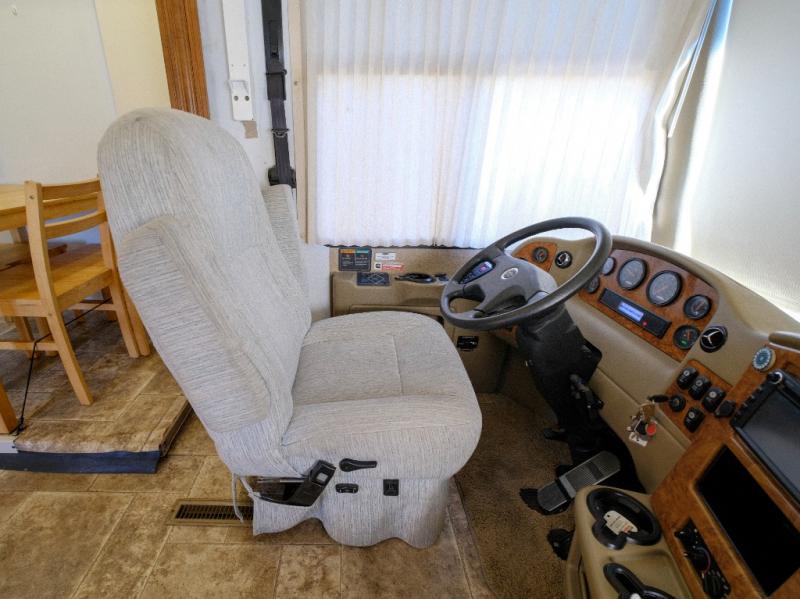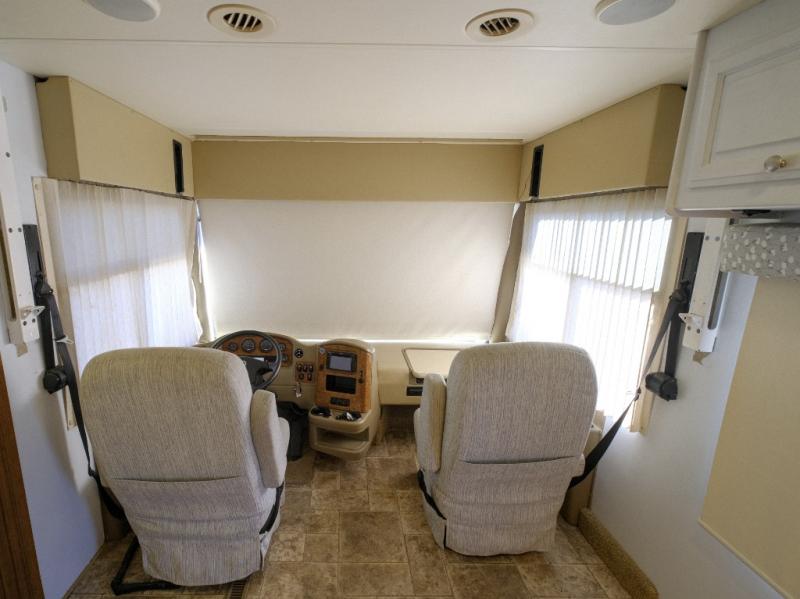 The entry to the coach includes an exclusive mudroom feature. Immediately to the right is a euro recliner. There is an overhead bunk above the cab included for additional sleeping space.