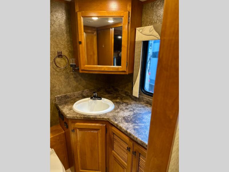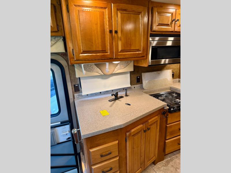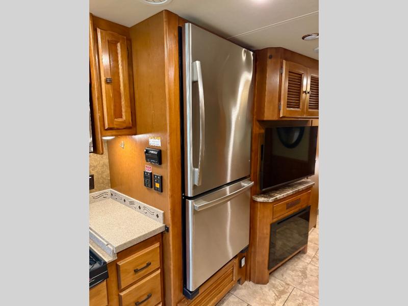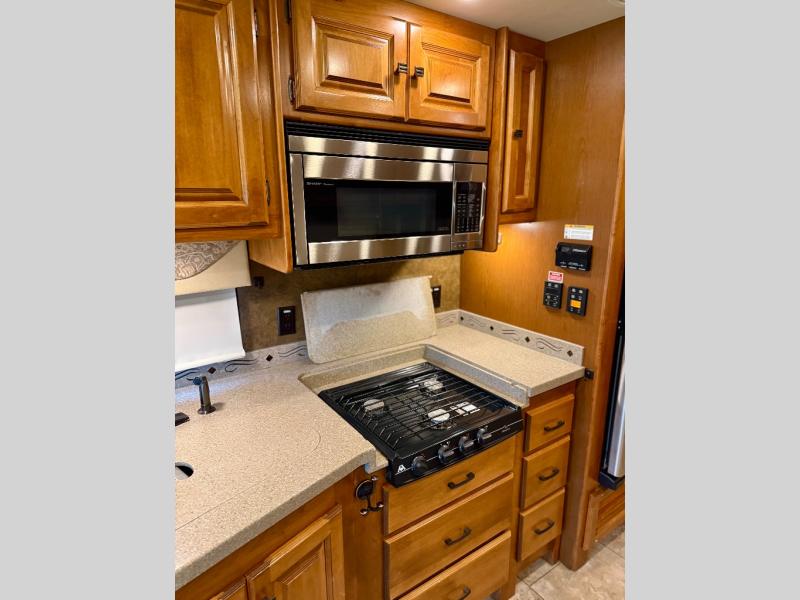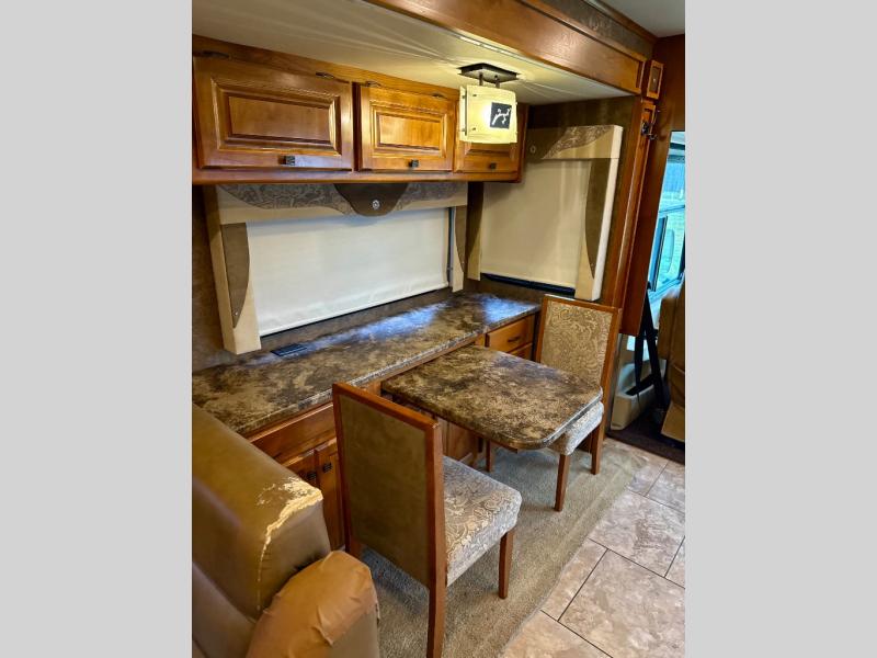 Step into the Allegro 36 LA class A motorhome to find two captain's chairs and overhead cabinets at each side in the front of the coach. You may choose an optional center TV and an optional driver side door.