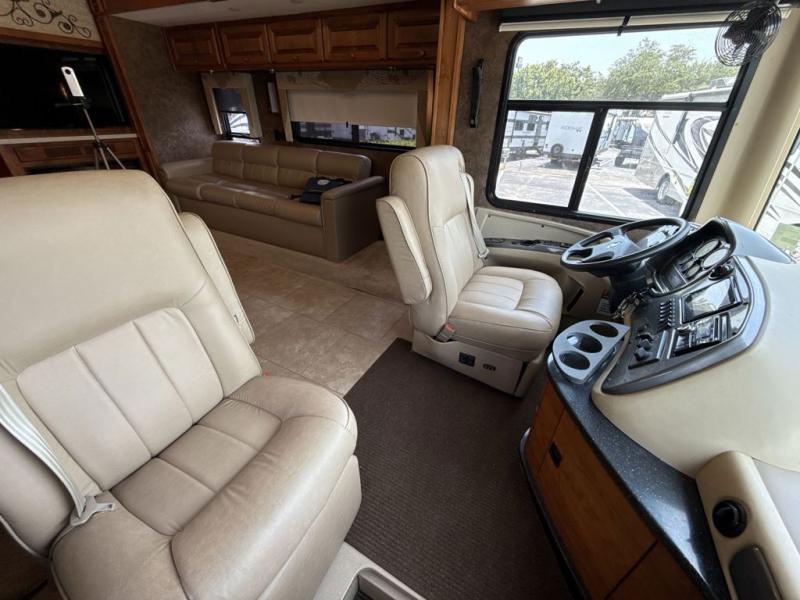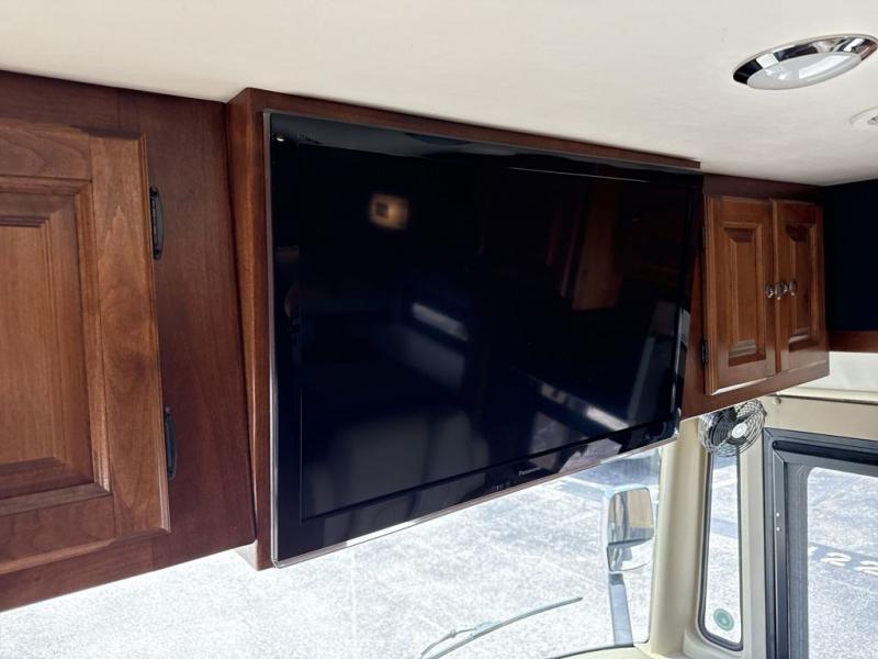 As you enter at the front passenger's side, there are two rotatable captain's chairs, lots of overhead cabinets and an optional center TV.