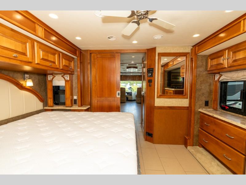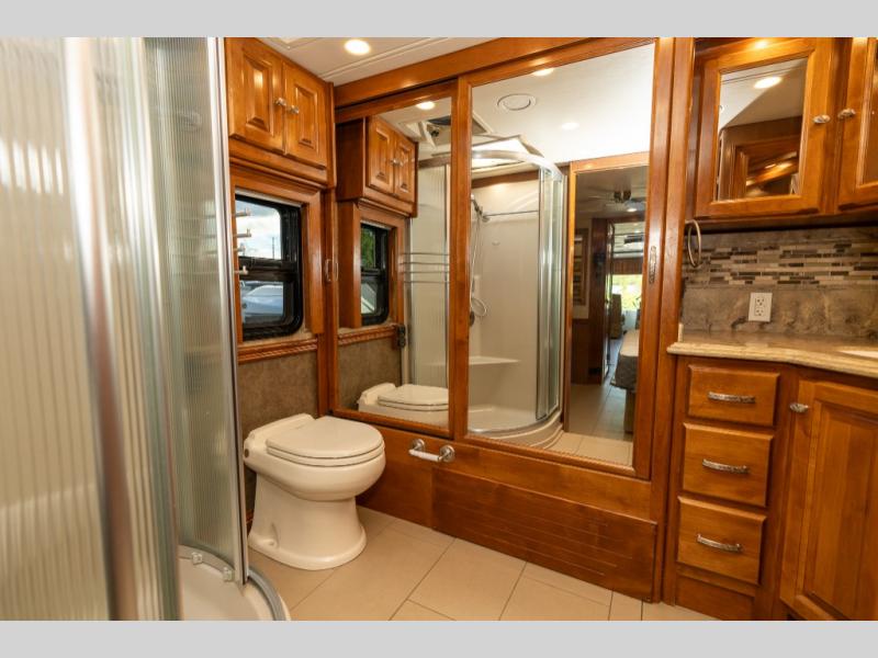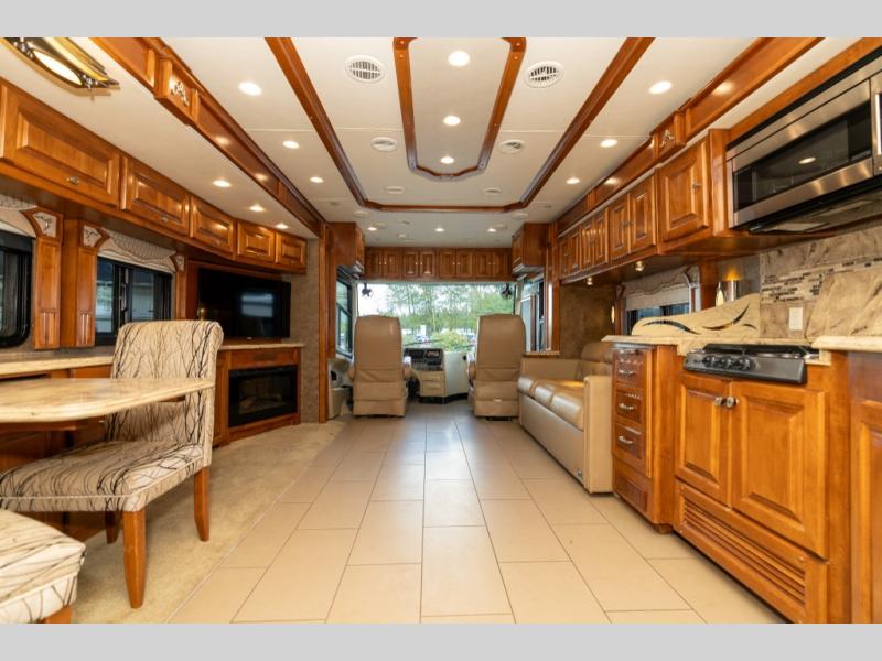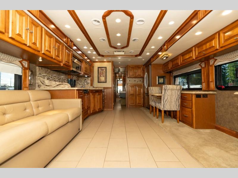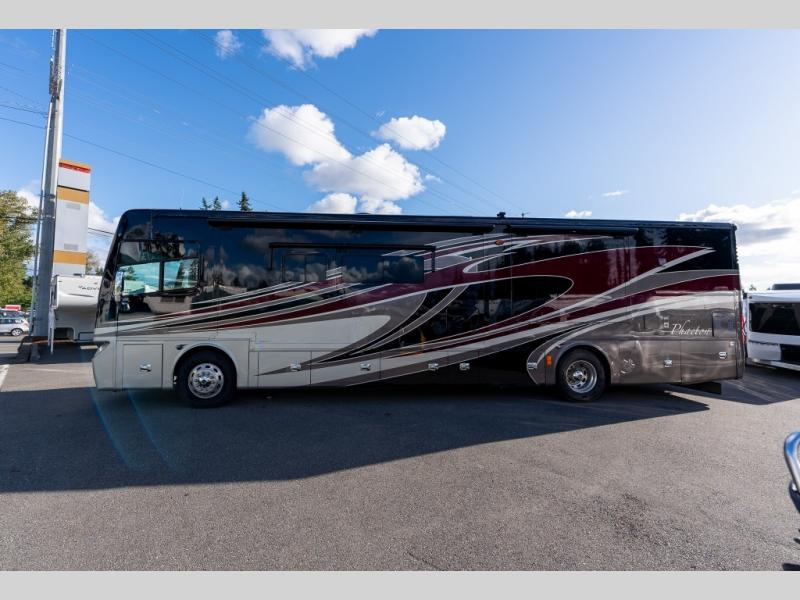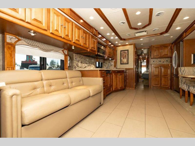 The quadruple slide out Phaeton 40 QBH from Tiffin Motorhomes features a rear full bathroom, an additional half bath and sleeping for up to seven.