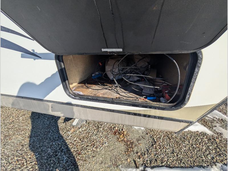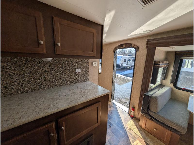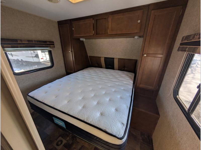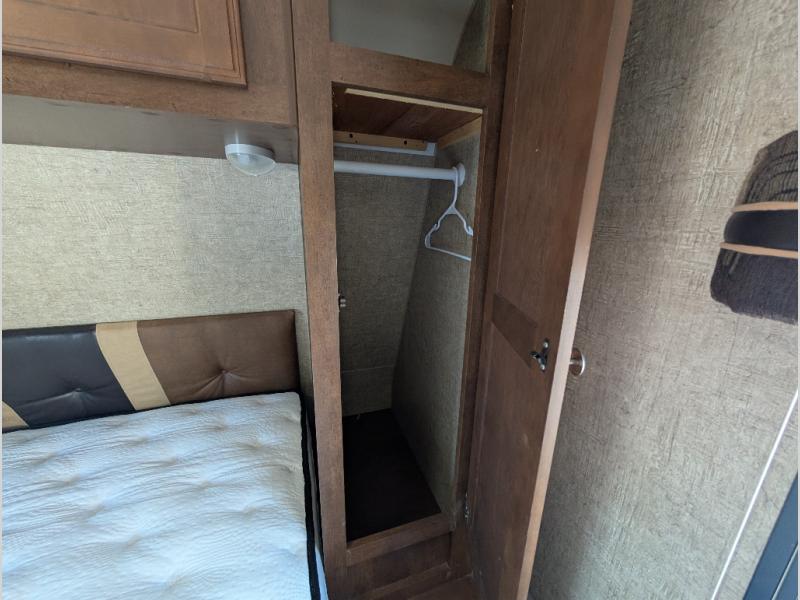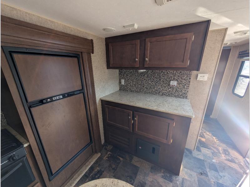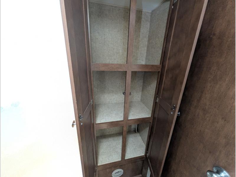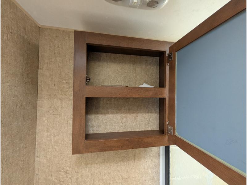 You will find plenty of overhead cabinets throughout the travel trailer as well as an exterior pass thru storage area.