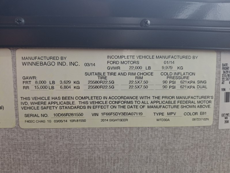 | VIN | 1F66F5DY3E0A07119 |