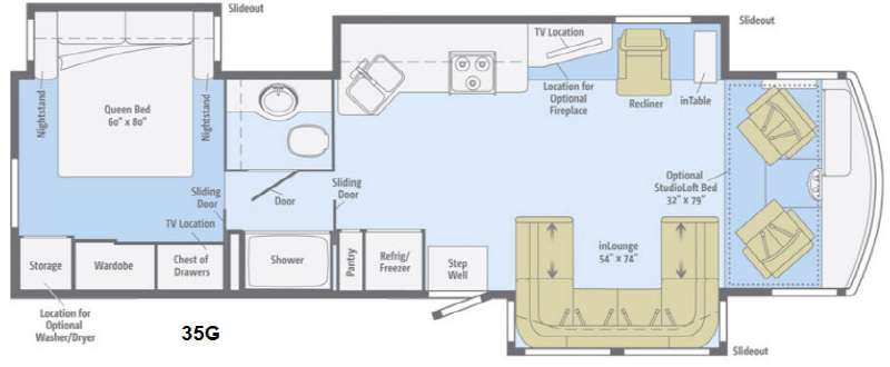 PRIORITY RV NETWORKWinnebago Sightseer Class A Coach w/Rear Queen Bed Slide w/Nightstands, Storage/Wardrobe/Chest of Drawers, Sliding Door Between Bedroom & Bath, Shower, Private Toilet Area w/Vanity & Sink, Sliding Door Between Bath & Living Area, Dbl. Kitchen Sink, 3 Burner Range, 42" LCD TV/Euro Recliner & Moveable Drop Leaf Table Slideout, Extendable Sectional Sofa/Sleeper Slideout, Refrig./Freezer, Pantry and More! Available Options May Include: Washer/Dryer, King Bed, Fireplace, 4-Door Refrig., StudioLoft.