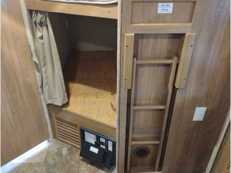 In the rear right corner you will find a double bed set of bunks. It will be easy to take along some extra family or friends. The ladder makes getting to the top bunk easy.