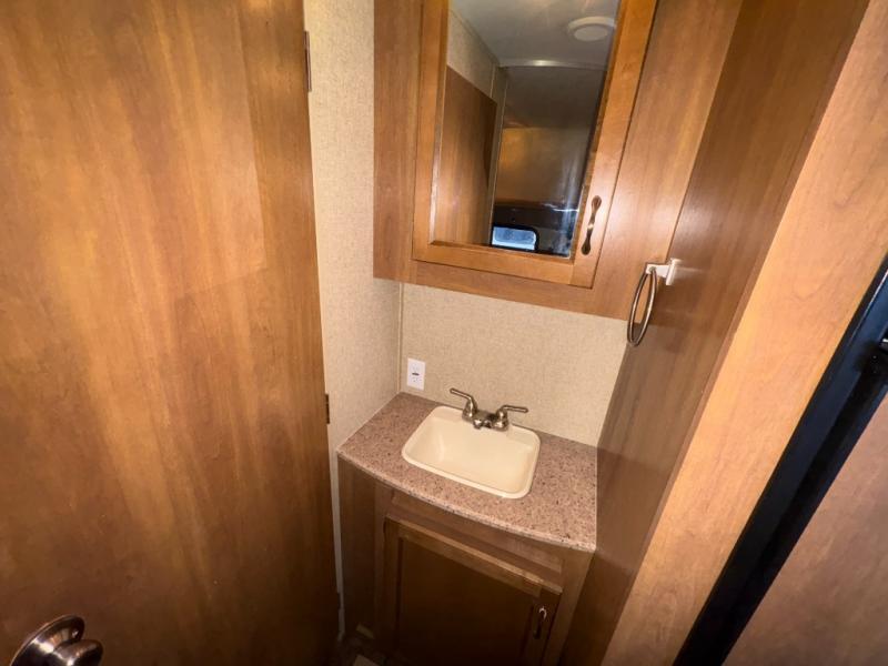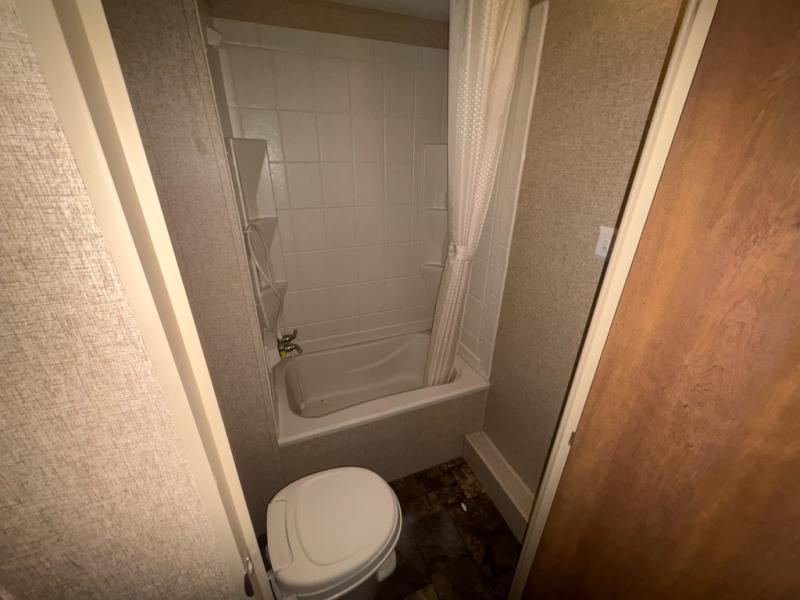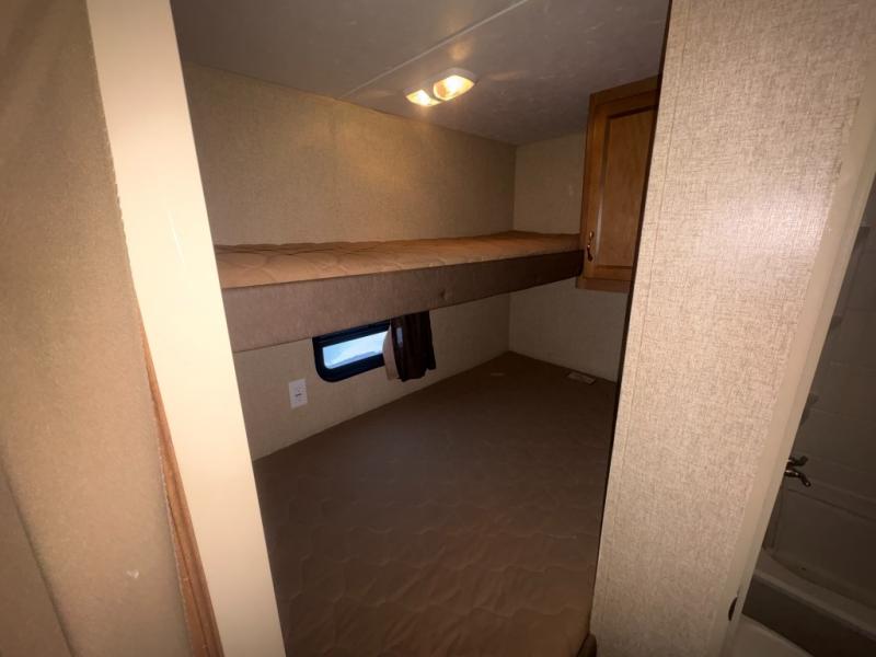 The rear left corner features a double bed with single bunk above, plus shirt closet for storage. The right rear offers a private tub/shower and toilet, plus a separate sink just outside the bath door, and so much more!
