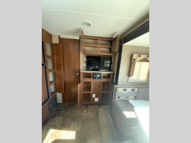 Step inside and notice a comfortable sofa straight ahead through the door. There is overhead cabinetry above for storage. On the opposite side of the room along the interior wall just off the dinette area you will find an entertainment center for your enjoyment.