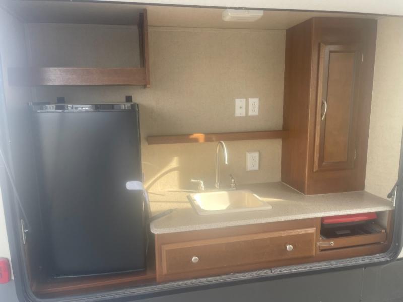 You will also find front and rear exterior storage to keep all of your exterior camping gear neatly stowed away when not in use. The front features a complete pass-thru compartment, and beneath the bunks find a camp kitchen below the curb side set of bunks for all of your outdoor cooking needs, plus so much more!