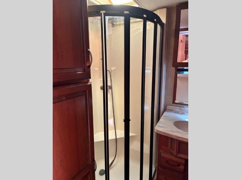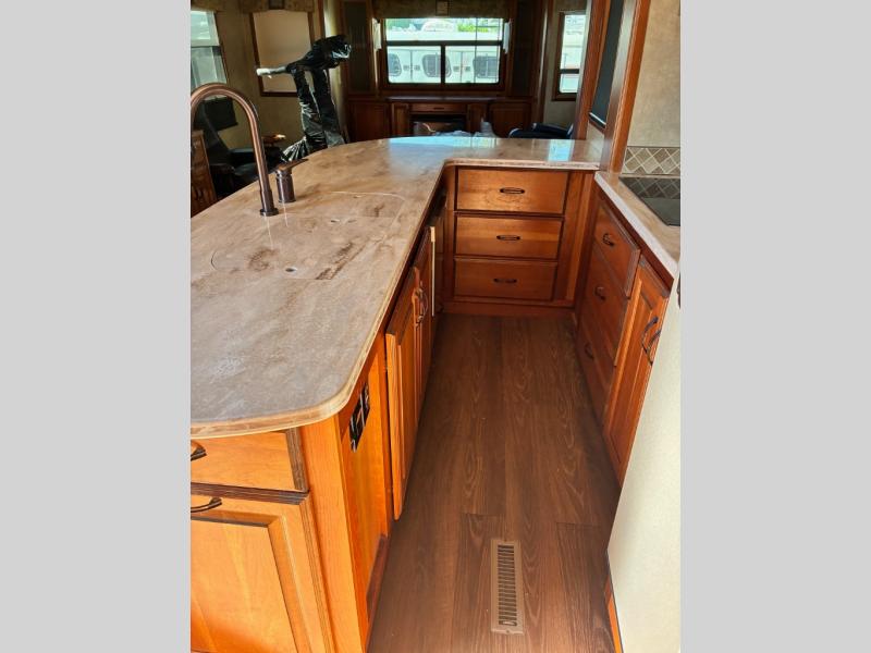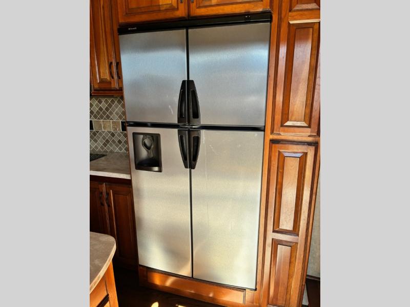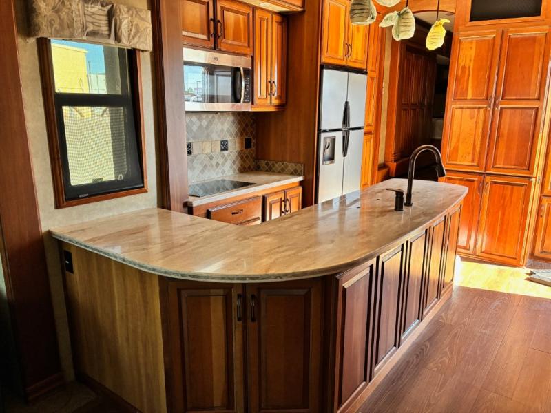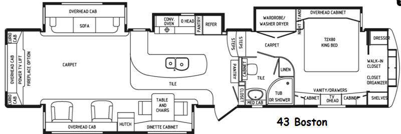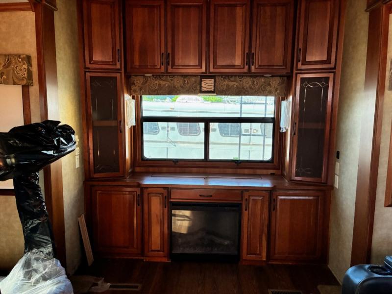 This Mobile Suites fifth wheel model 43 Boston has everything you might need while traveling. Enjoy plenty of interior space with four slides with two in the main living and kitchen areas combined. There is also a king size bed and fireplace to make it feel a lot like home.