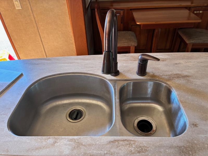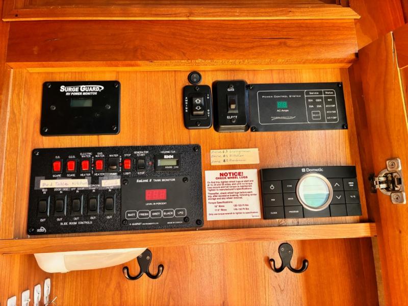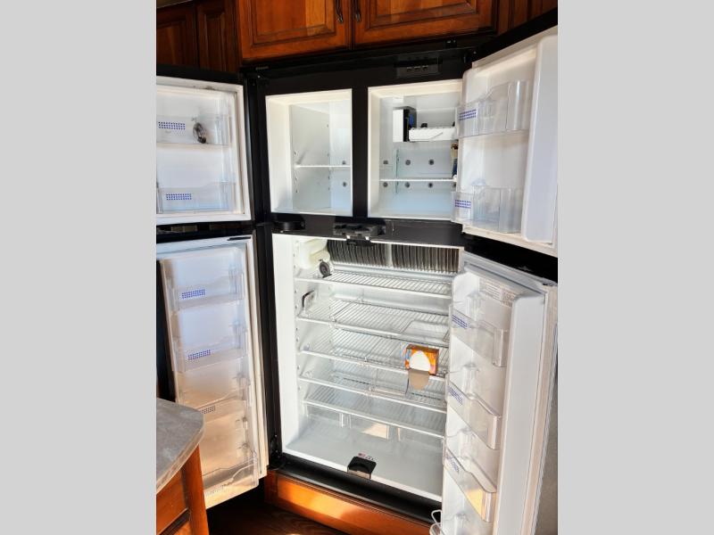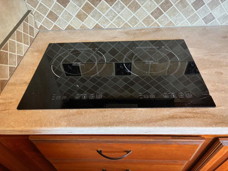 The kitchen area provides everything needed to prepare and cook gourmet meals and snacks for your family. There is a large L-shaped counter with a double sink, plus the slide out two burner induction range with convection oven, pantry and 4 door residential refrigerator too. A second pantry is located just off the counter area near the front door.