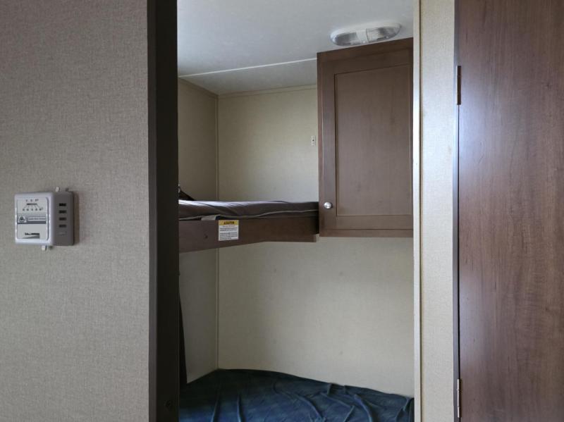 The opposite corner features a double bed with hinged upper bunk, and so much more!
