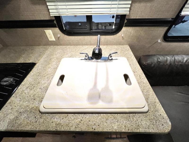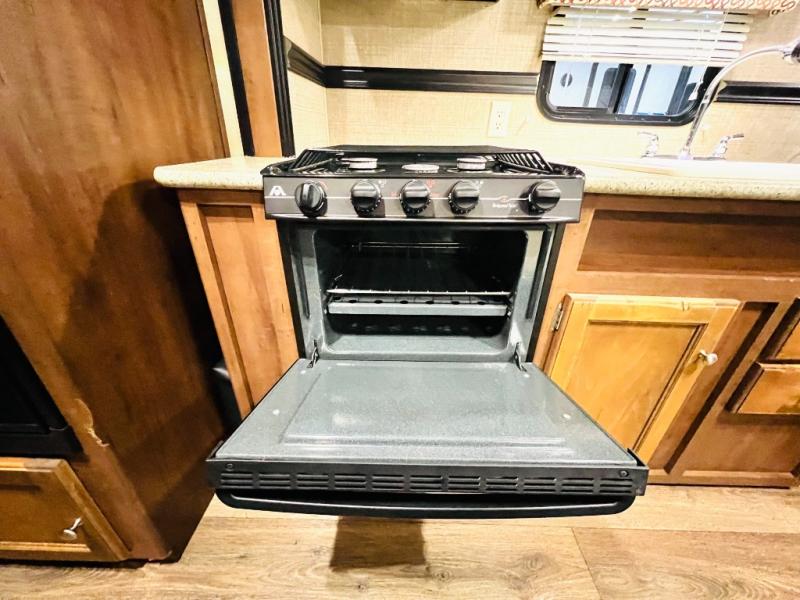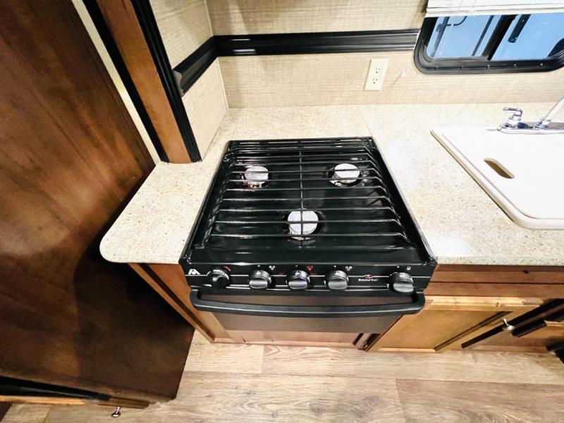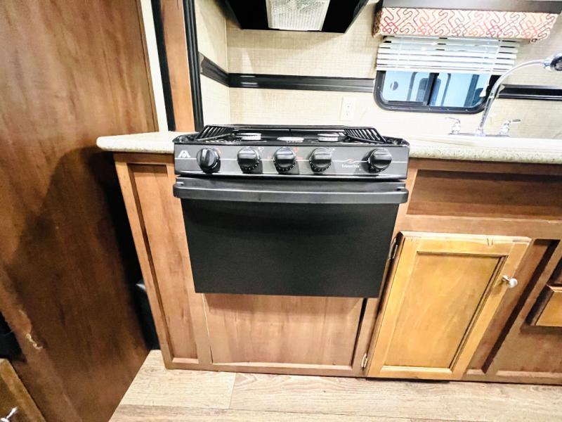 Outside beneath the bunk area enjoy an outdoor kitchen which features a refrigerator, single sink, and two burner cook-top, plus so much more!
