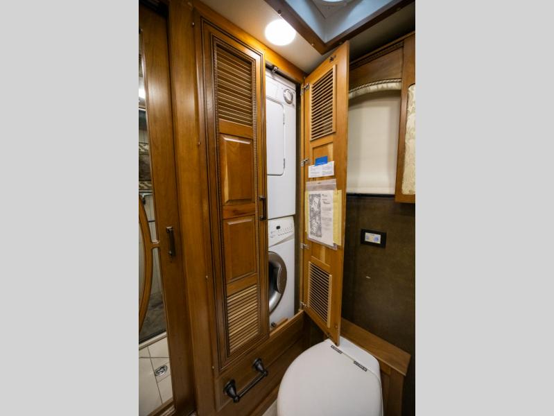 In the rear there is the master bath with a shower, toilet, and two sinks. Along the rear wall you will find a wardrobe with sliding mirror doors and a washer and dryer.