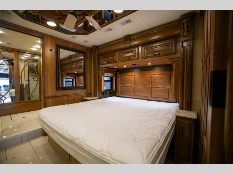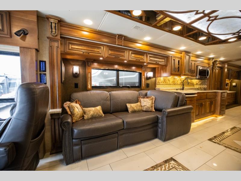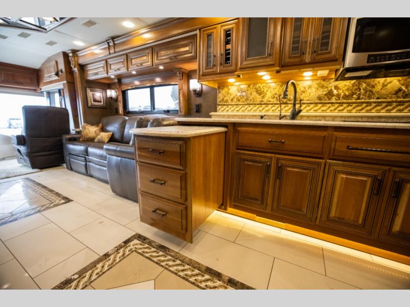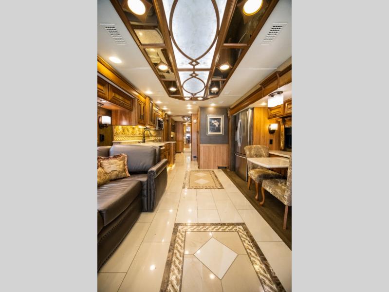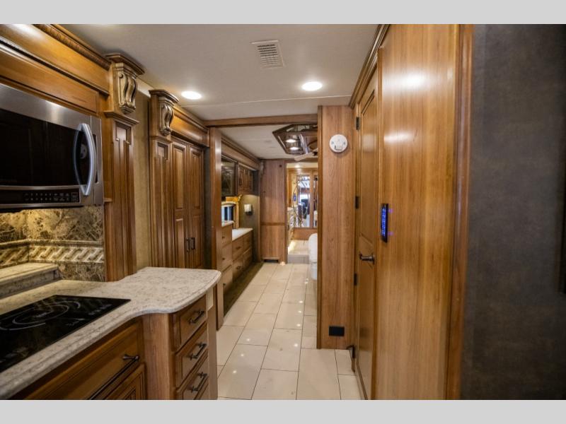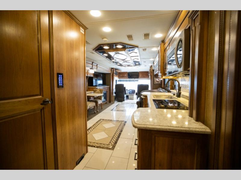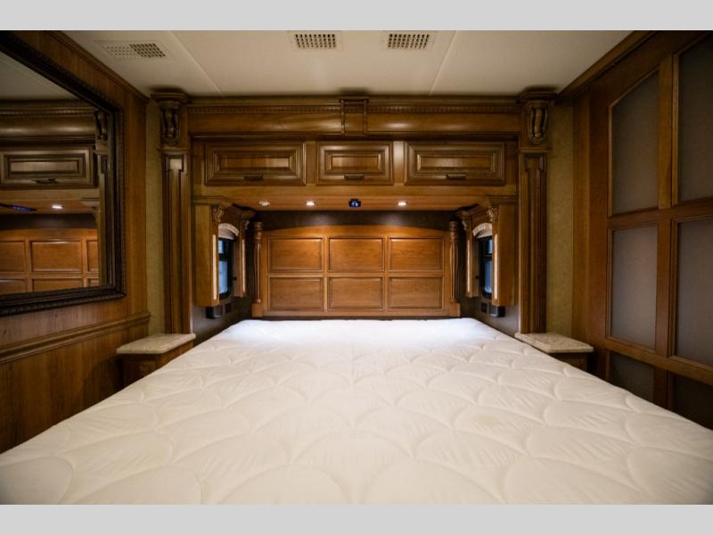 The Cornerstone 45B motor home by Entegra Coach offers quad slides and a rear master bath.