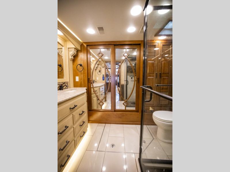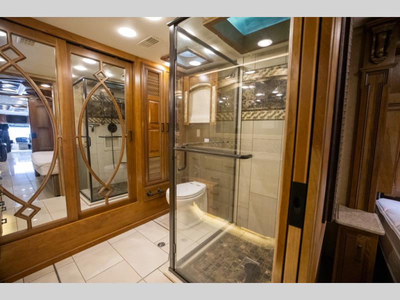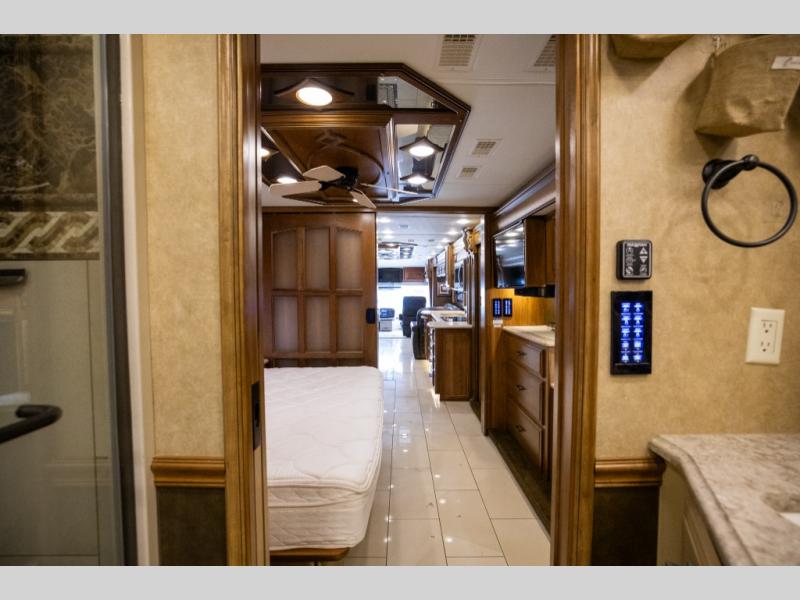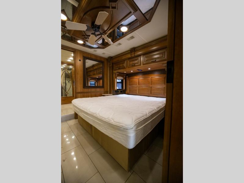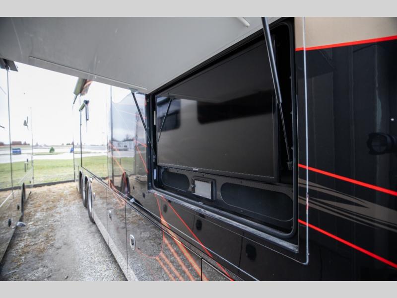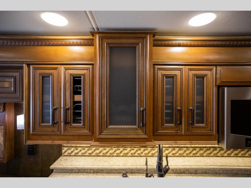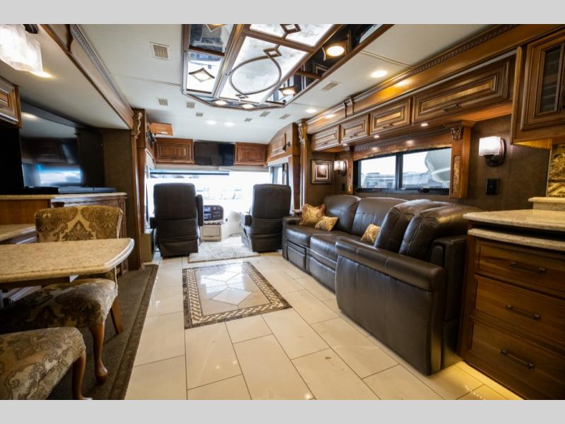The Cornerstone 45B motor home by Entegra Coach offers quad slides and a rear master bath.