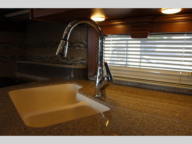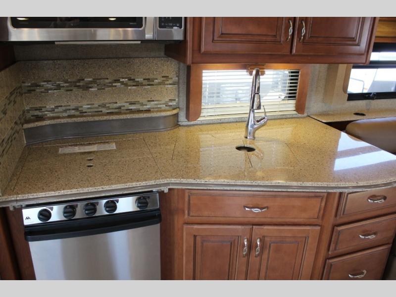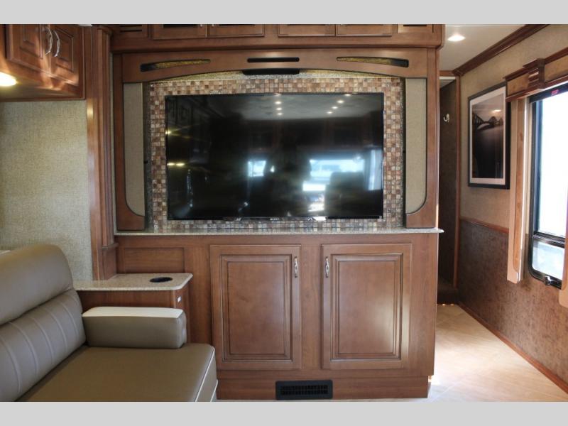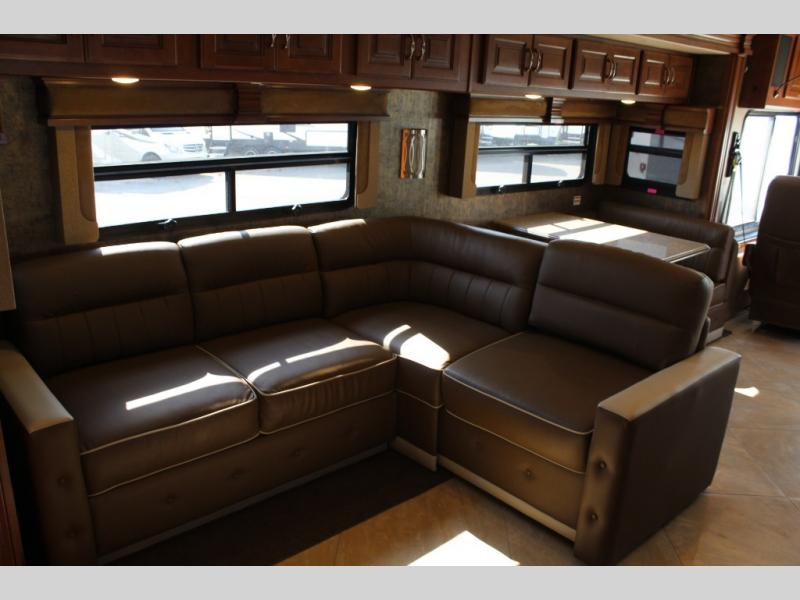 You can have all of the standard features on this motor home, or you can choose some options to make this motor home better. These options may include, a front 32" LCD TV, exterior entertainment center, dishwasher, three burner range with oven, residential refrigerator, l-sofa, u-shaped dinette with dual recliners, sofa with air mattress, u-shaped dinette and sofa, facing dinette, or a king bed with air mattress.