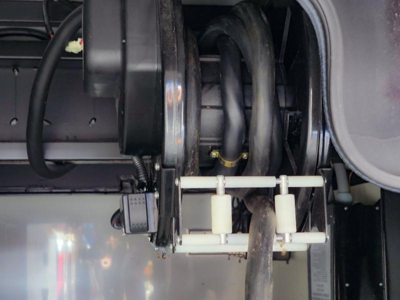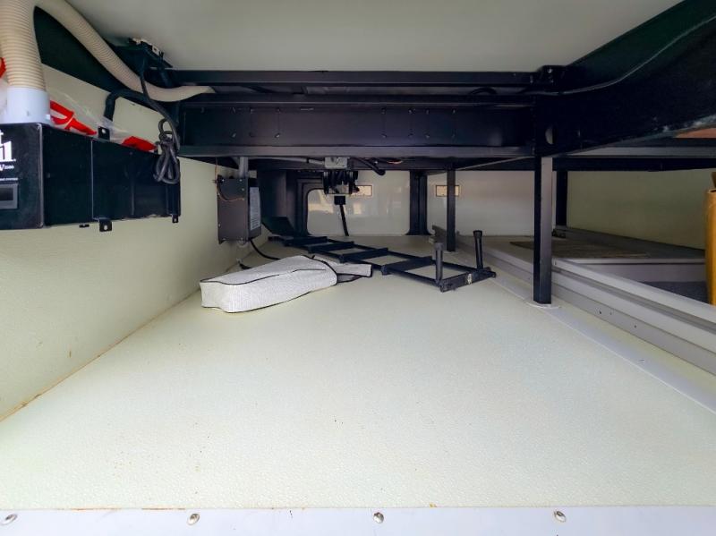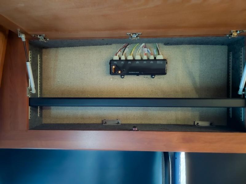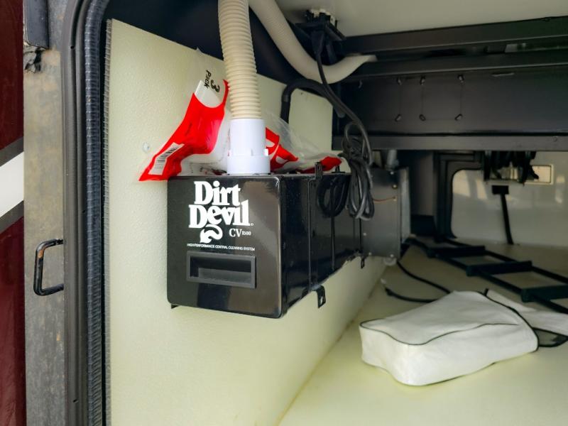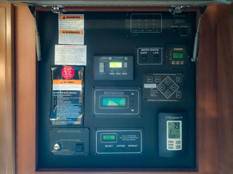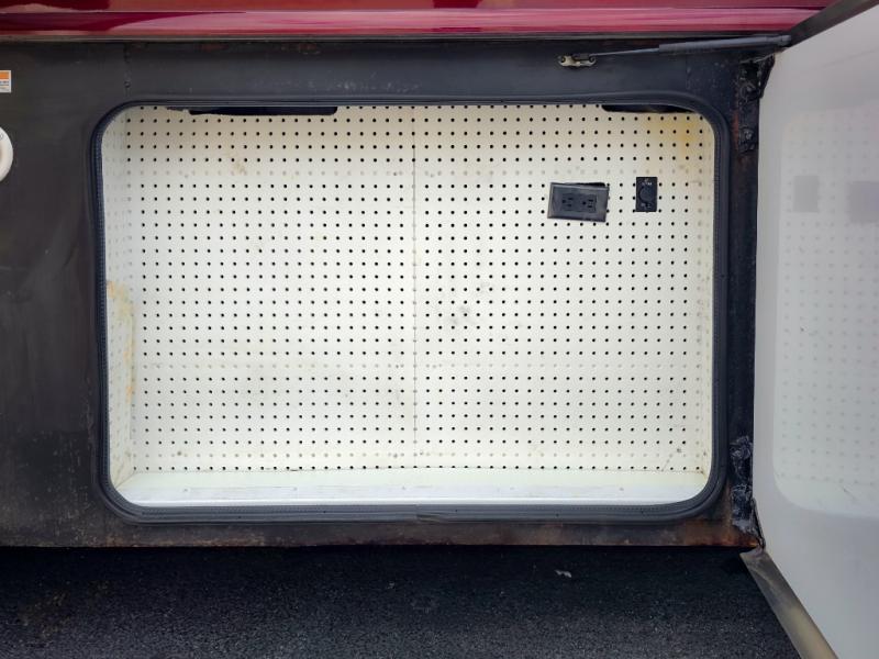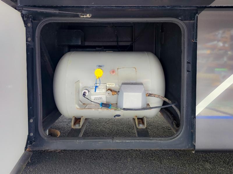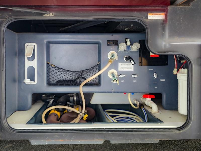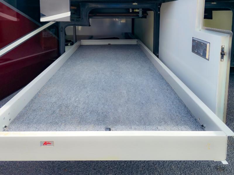 As you enter the motor home, on the passenger side you will find a slide with a double kitchen sink, three burner range, microwave, refrigerator, and pantry. Next to the pantry there is a 40" LED TV for your enjoyment. The opposite side of the motor home offers a full wall slide with a free-standing dinette or an optional u-dinette, l-transformer sofa, storage cabinet, and wardrobes. There is even a 32" LED TV above the wardrobe.