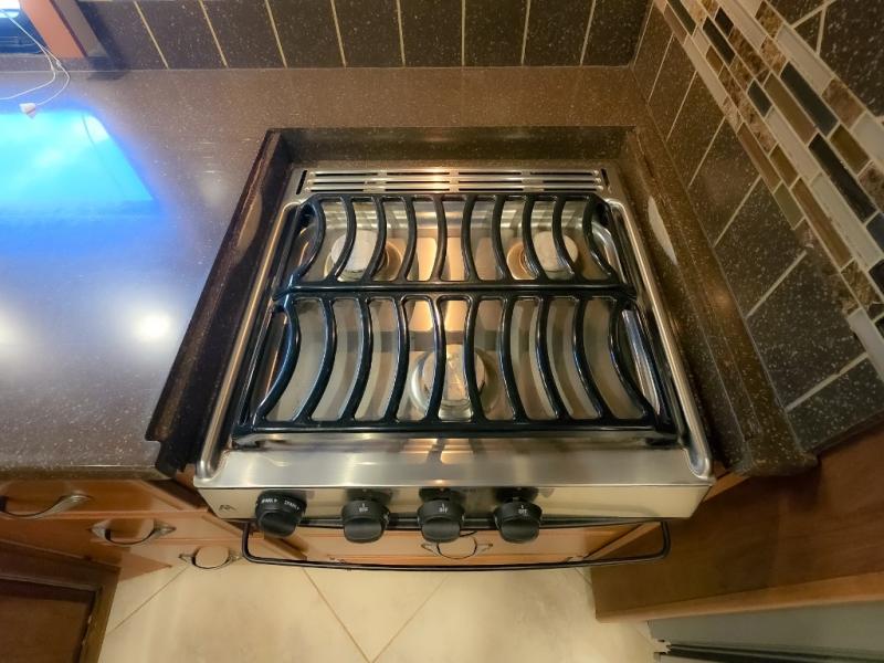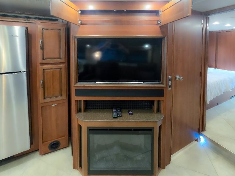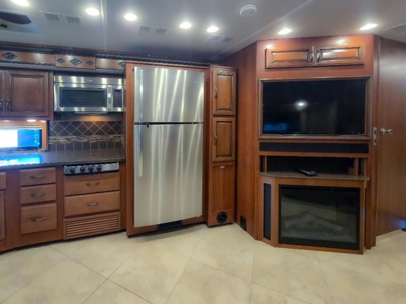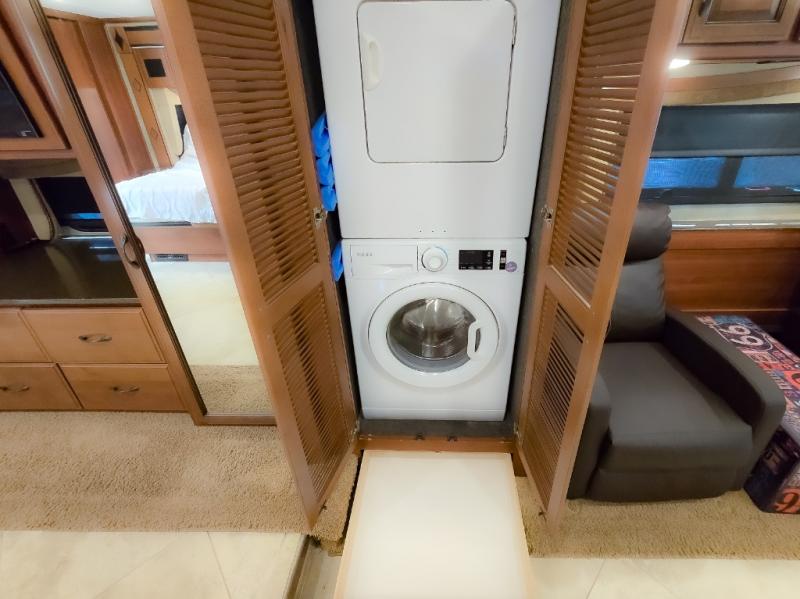 There are many options that you can choose from such as a stackable washer and dryer, electric fireplace, residential refrigerator, 3-burner cooktop with oven, entertainment center, and a front 32" LED TV.