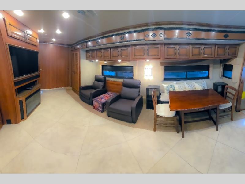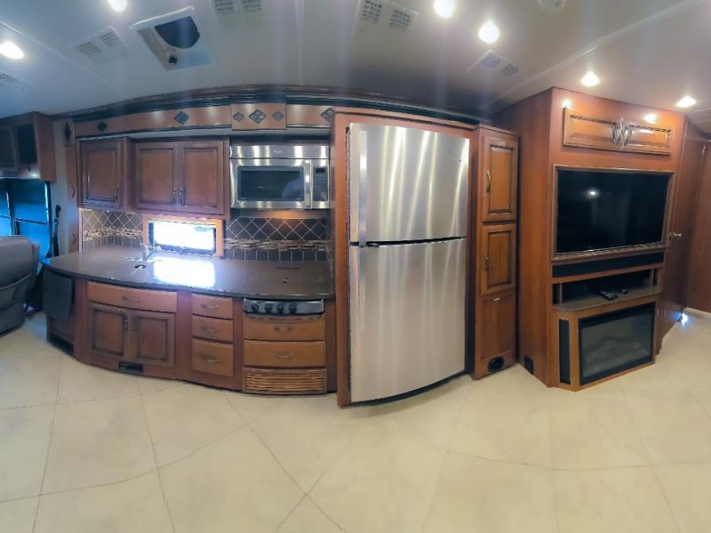 The Expedition 38K motor home by Fleetwood offers triples slides with one of the slides being a full wall slide.