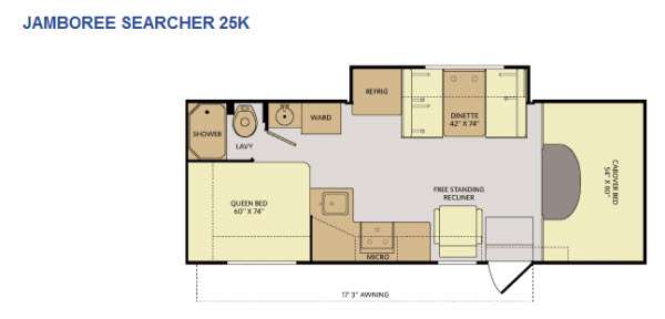 The 25K Jamboree Searcher is available in a Ford E450 or Ford E350. The specifications are shown for the E450.