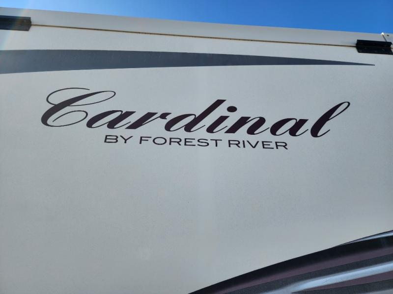 The Cardinal 3727RE fifth wheel by Forest River offers a rear entertainment center and triple slides.
