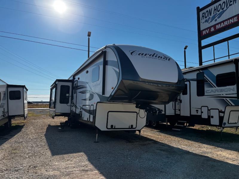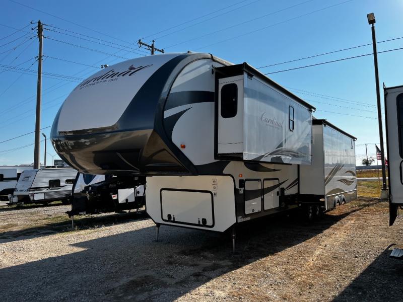 Call 512-930-4922 for more info!The Cardinal 3850RL fifth wheel by Forest River offers a rear living area and triple slides.