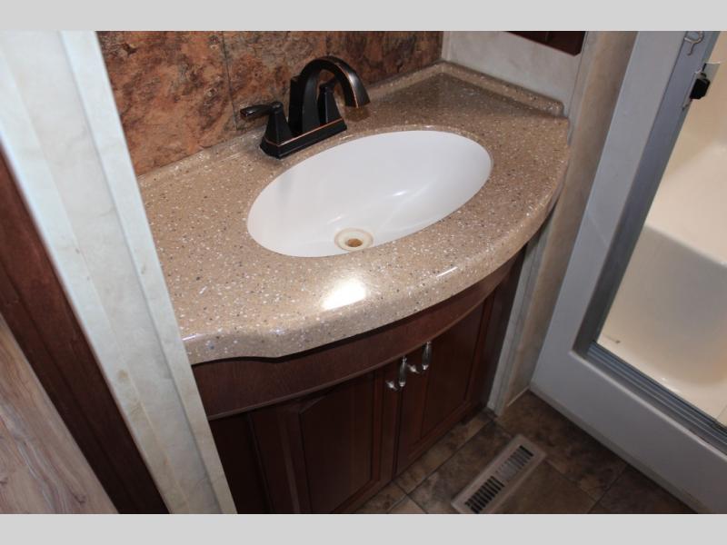 As you enter the 40CCK Cedar Creek Cottage destination trailer by Forest River you will be wowed by the space that the triple slide outs provide this destination trailer.